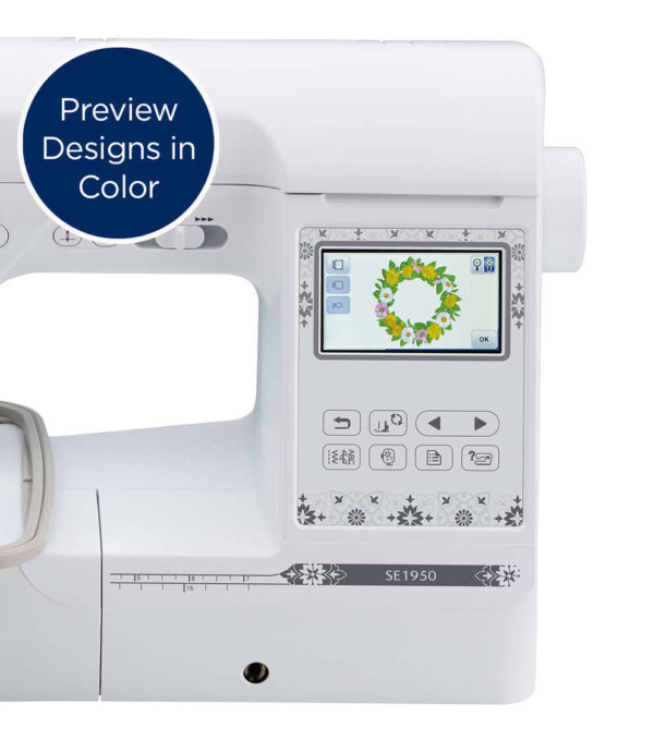 - 5″ X 7″ EMBROIDERY FIELD: The SE1950 has a generous 5″ x 7″ embroidery field for larger projects and comes with an included hoop and 8 sewing feet.
