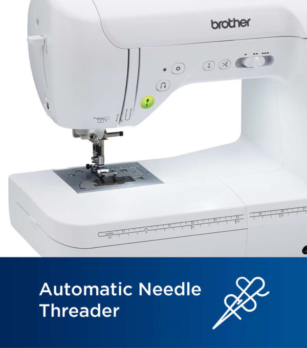 - ADVANCED NEEDLE THREADER AND DROP-IN TOP BOBBIN: Advanced features on the SE1950 include an advanced needle threading function that quickly pushes thread through the needle with the press of a lever and a jam-resistant drop-in top bobbin.