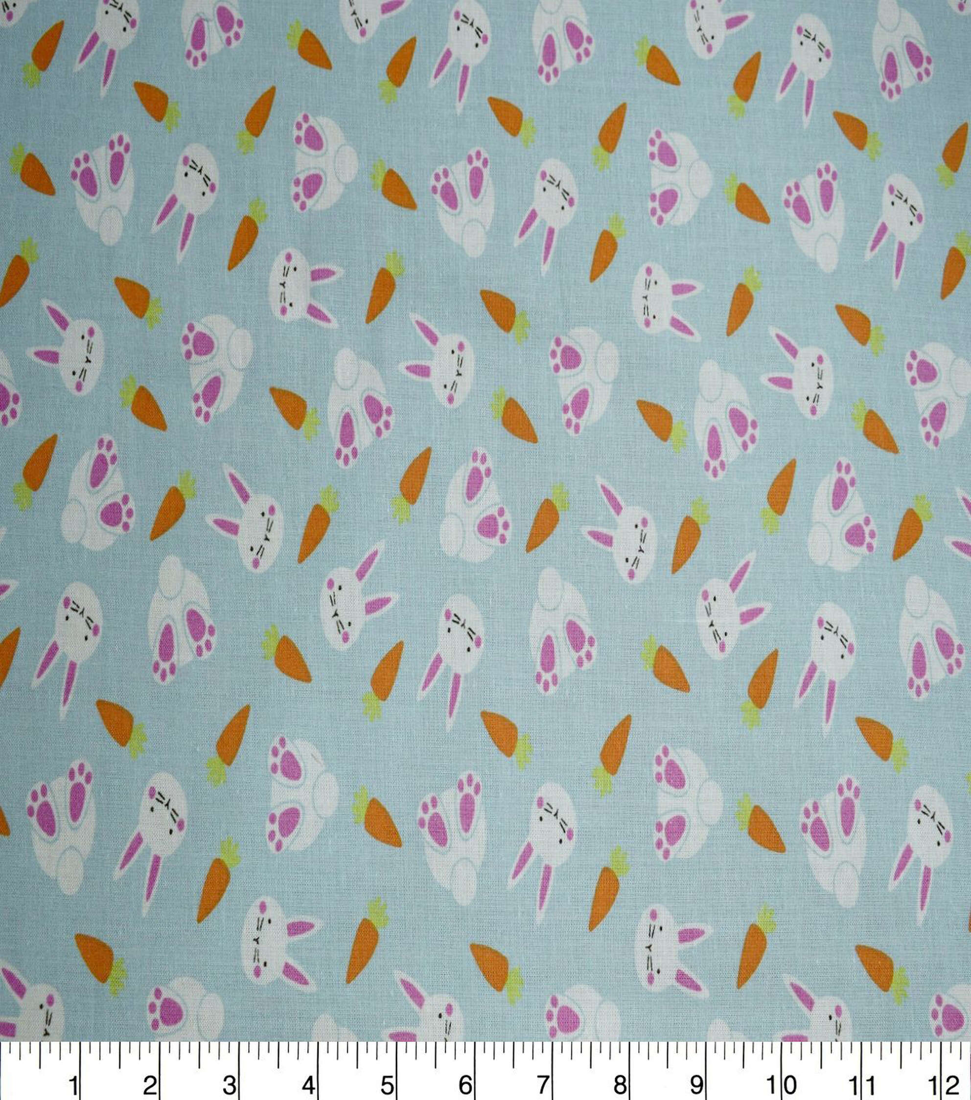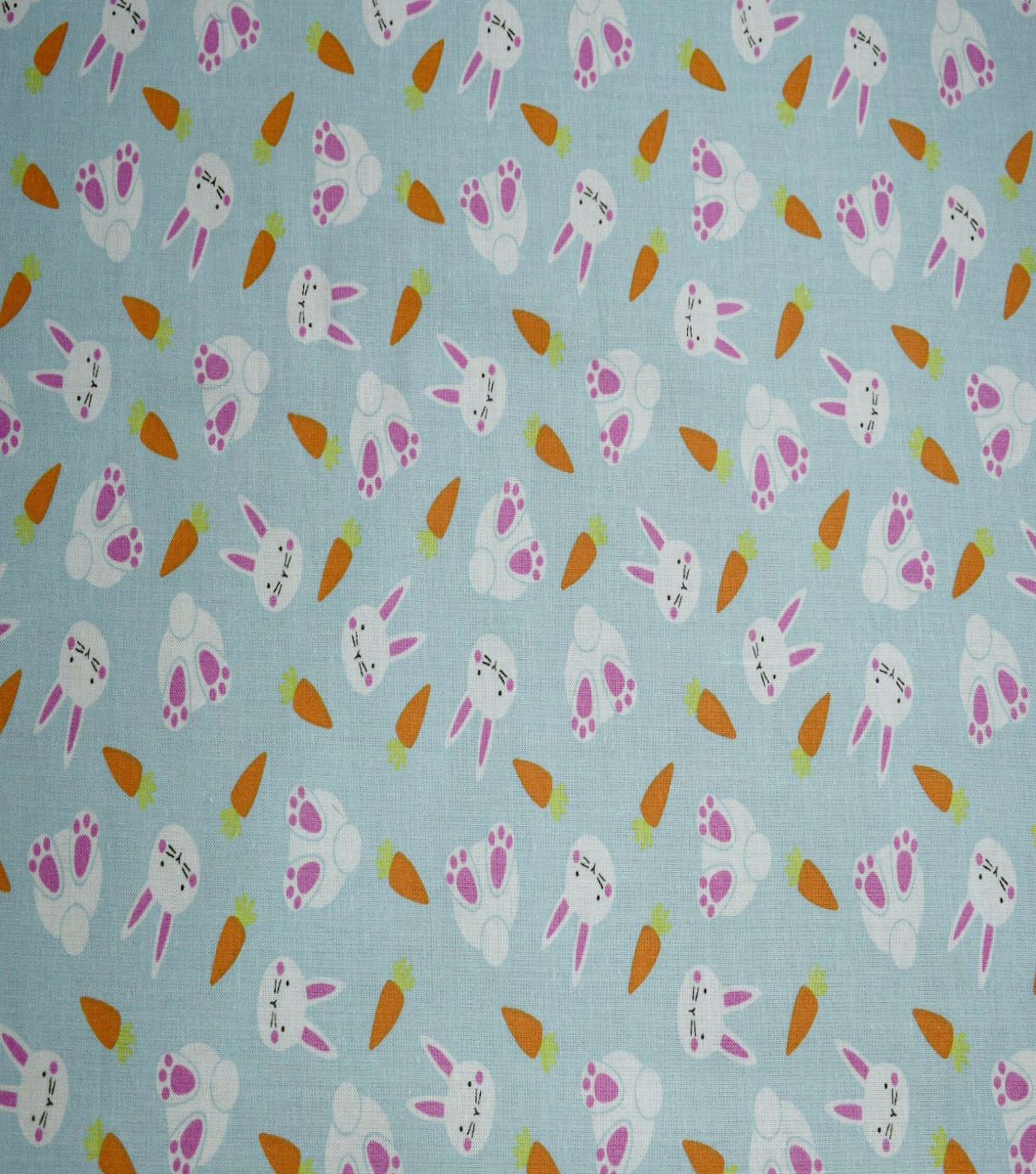 Get Ready for Easter with Our Bunnies & Carrots on Blue Cotton Fabric