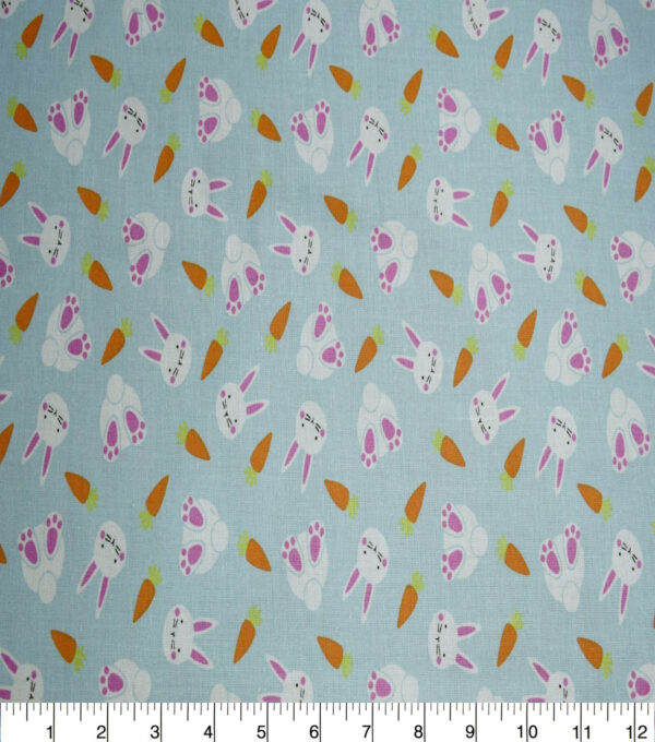 Get Ready for Easter with Our Bunnies & Carrots on Blue Cotton Fabric