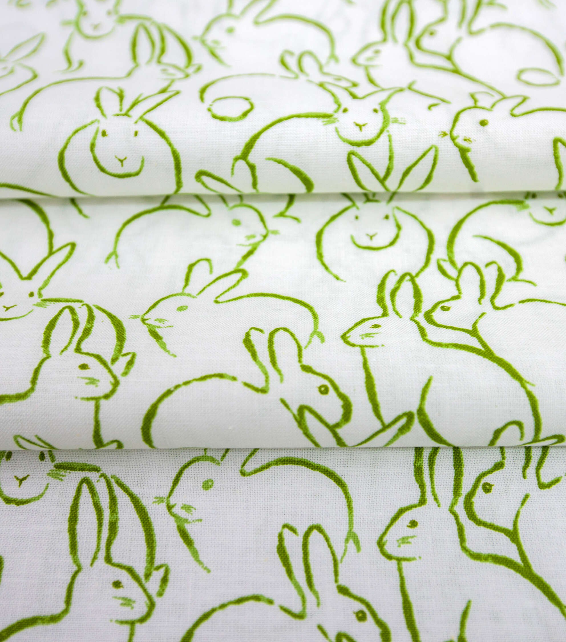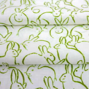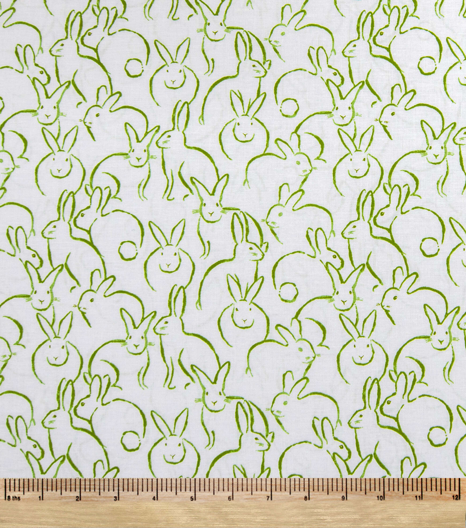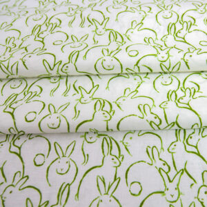 Bunnies Green On White In Full Bloom Easter Cotton Fabric