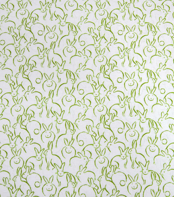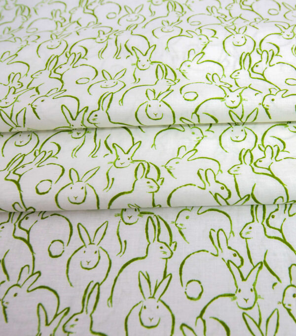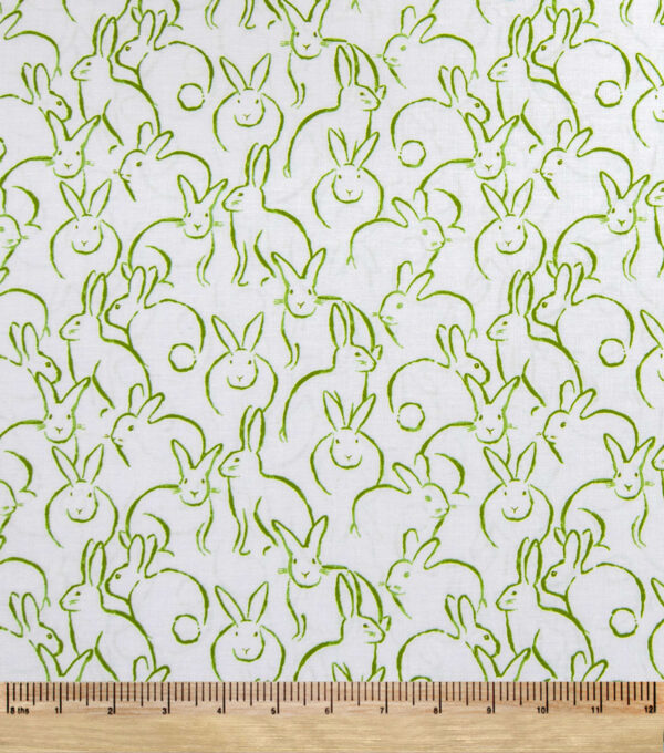 Bunnies Green On White In Full Bloom Easter Cotton Fabric