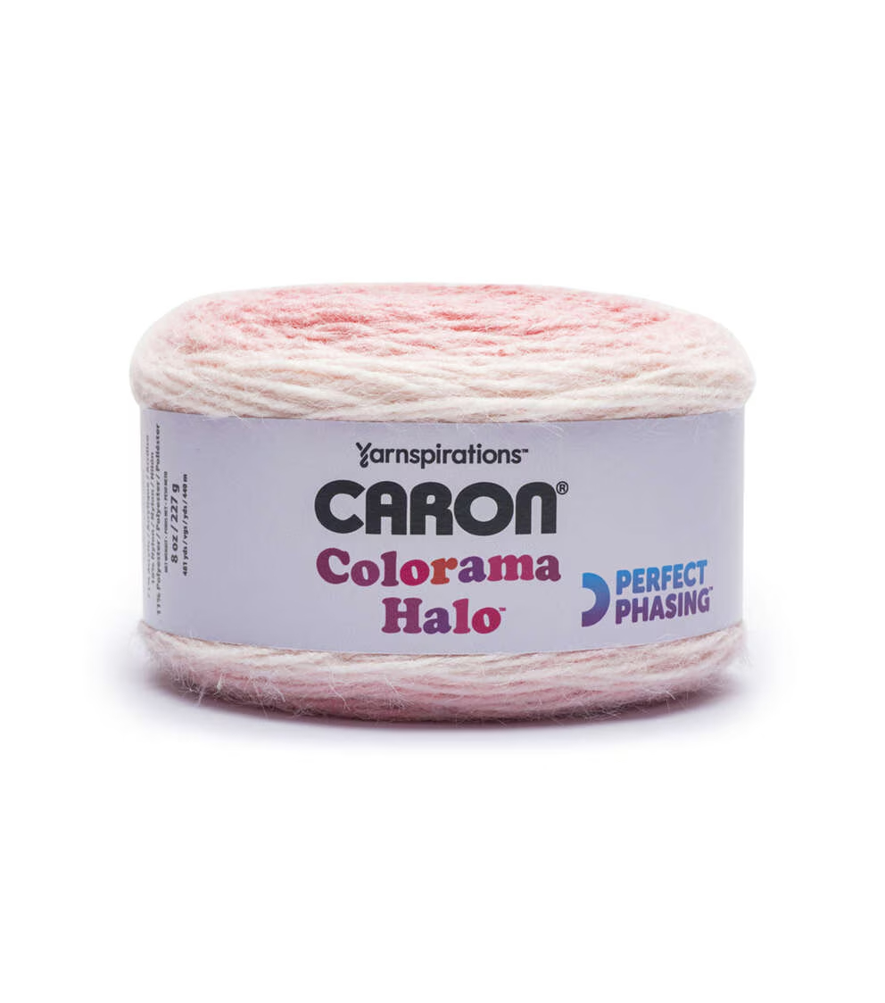 Caron Colorama Halo is a soft, luxuriously textured yarn with a beautiful soft ombre shade range. Consumers will love stitching up cozy shawls, sweaters, and accessories worry-free as the texture can help disguise any stitching mistakes.