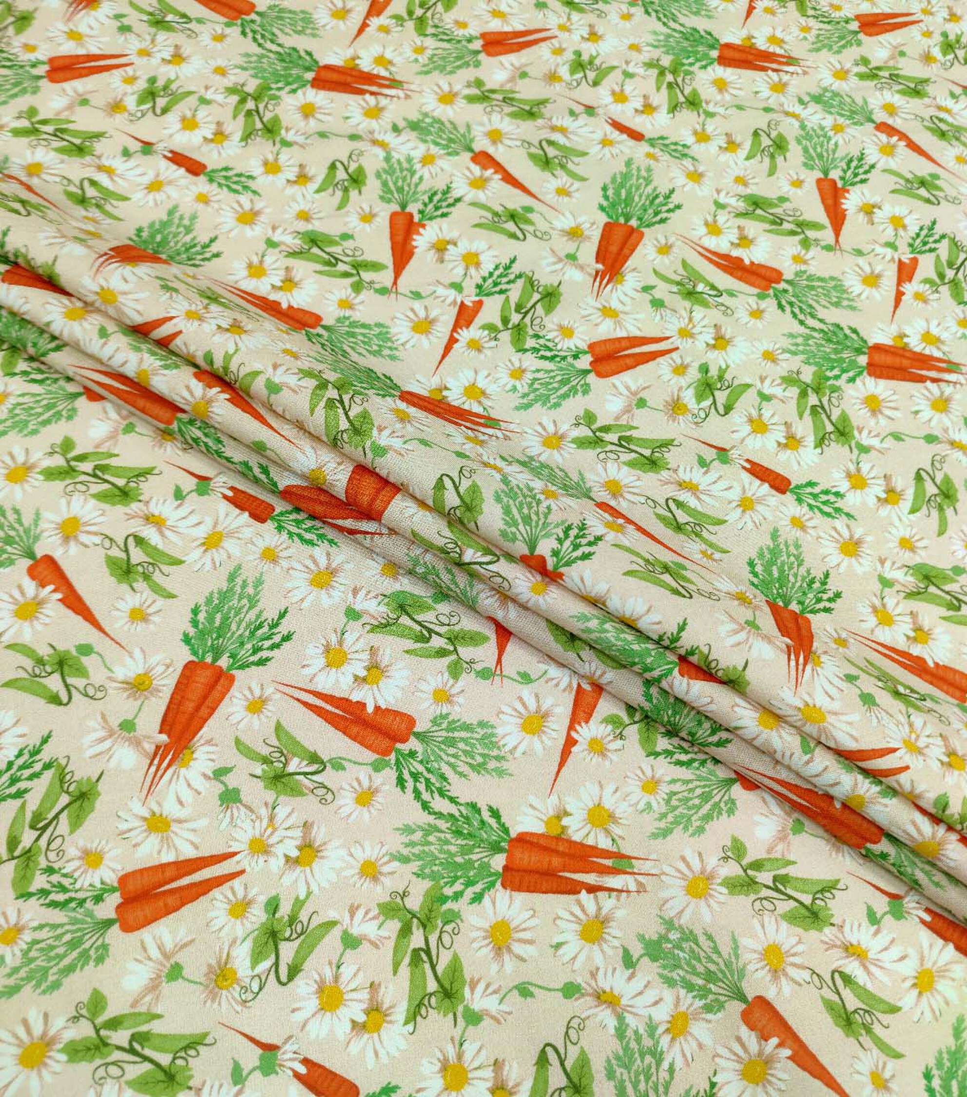 - Design: Carrots & Daisies on Green Easter Cotton Fabric