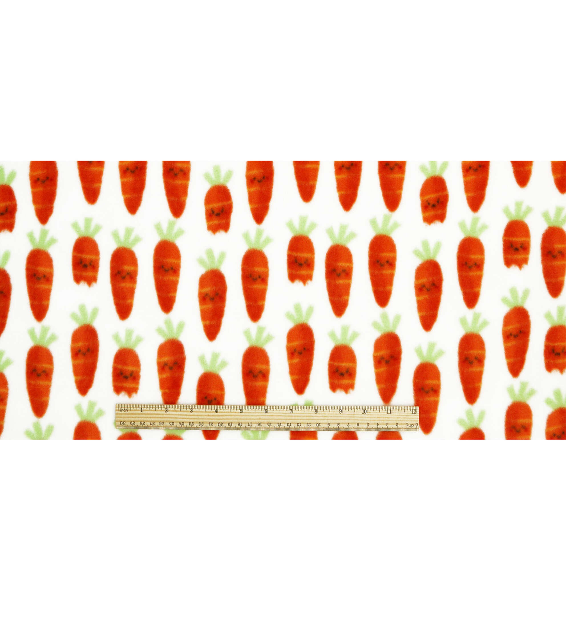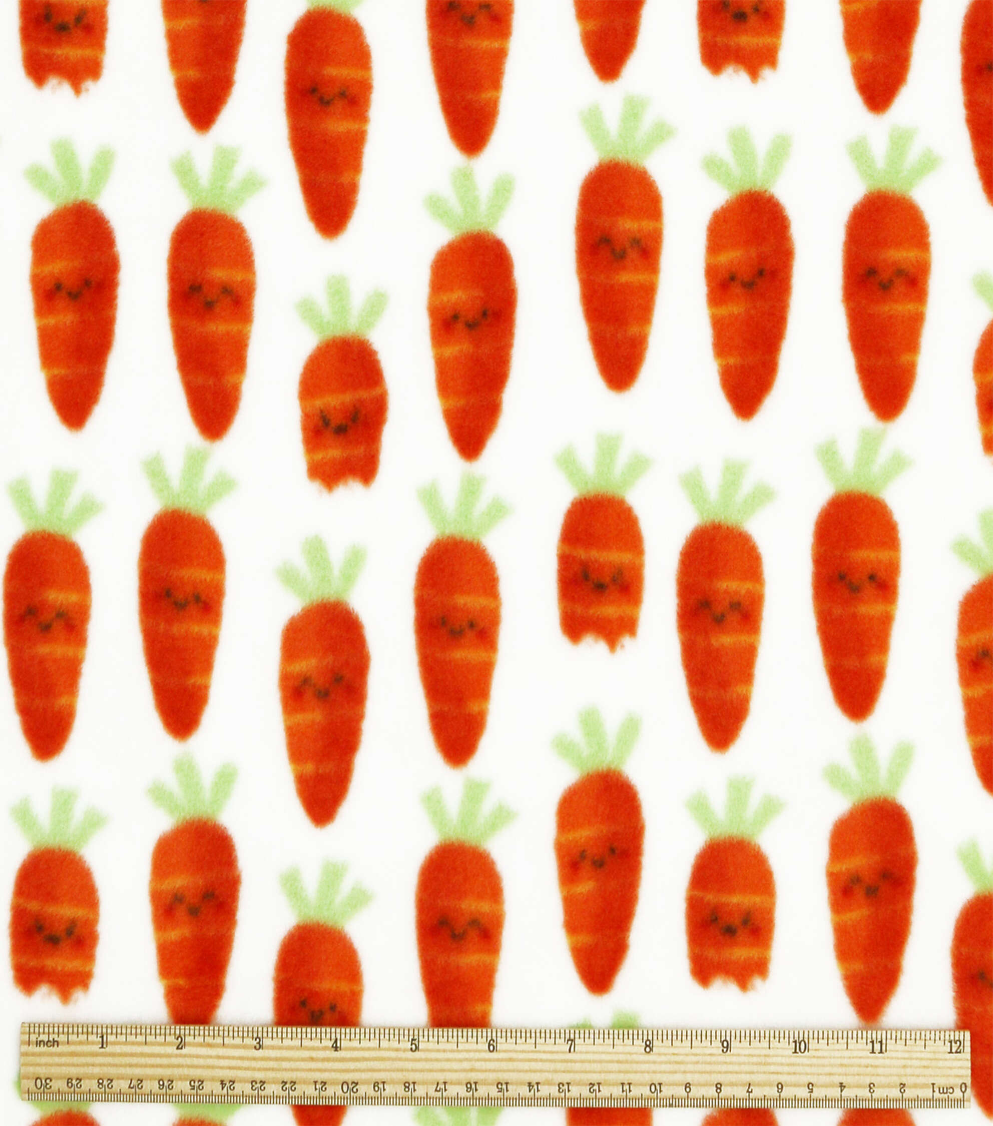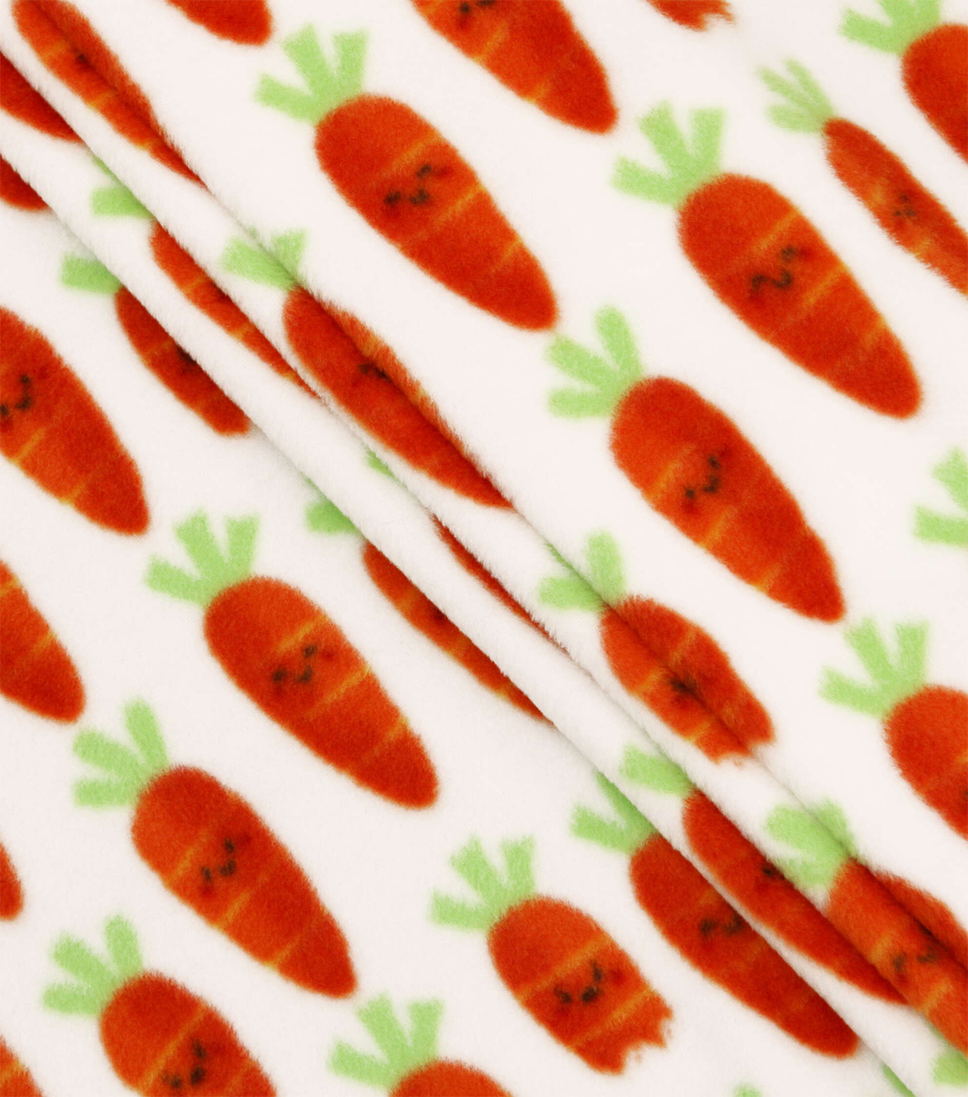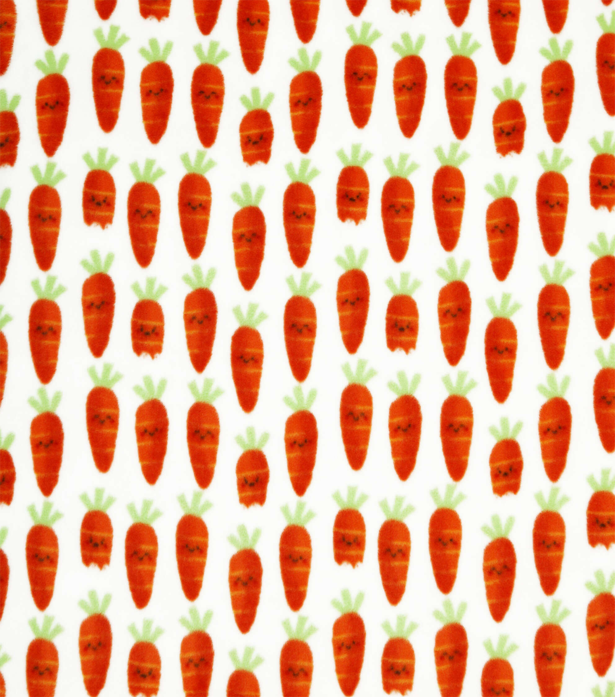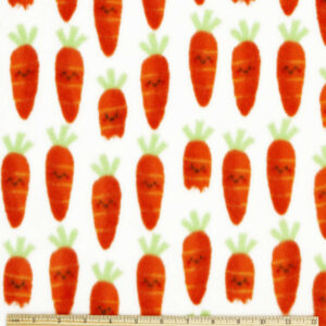 Get Cozy with Carrots on White Anti Pill Plush Fleece Fabric by POP!