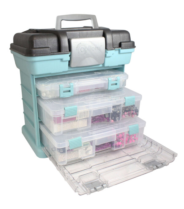 Grab-n-Go Systems give straightforward storage with multiple pullout stowaways and spacious under-the-lid containment for supplies and accessories. Each is designed to give crafters organized access for a more efficient workspace.