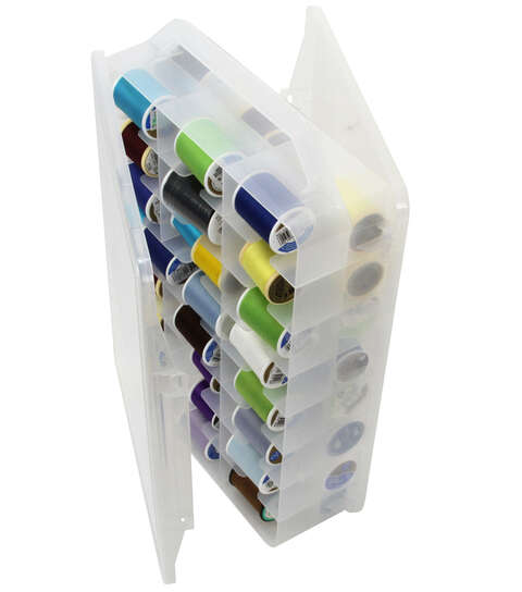 Organize your crafting essentials in the Creative Options Thread Organizer-Clear. It’s crafted of sturdy and transparent plastic and features two hinged doors for easy accessibility from either side. With 46 compartments in the interior portion, you can place plenty of accessories like spools, bobbins, floss and other tiny embellishments. This organizer is designed with a convenient carry handle for easy portability.