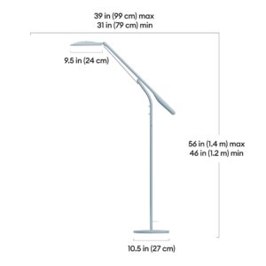 - Floor lamp dimensions: D: 10.5 in, W: 31 – 39 in, H: 46 – 56 in (D: 27 cm, W: 79 – 99 cm, H: 1.2 – 1.4 m)