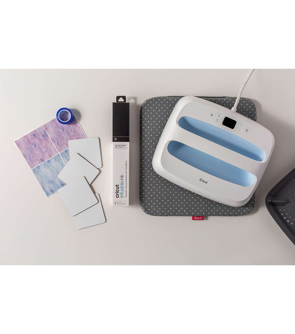 It’s good to be blue with this bundle, perfectly curated for the Infusible Ink and iron-on enthusiast. Get the easiest-to-use DIY heat press plus a Cricut EasyPress Mat, and everything you need to get started with Infusible Ink. Now with adjustable heat up to 400 Fareinheit(205 C), Cricut EasyPress 2 is your no-stress heat press. Combining the speed of a heat press and the convenience of an iron, Cricut EasyPress 2 gives you fast, effortless results that really last, even after repeated washes. Eliminate guesswork with rigorously tested time and temperature settings for every project, apply heat, and when the beep sounds, you’re done! Helpful safety features include an insulated Safety Base and auto-shutoff feature. Cricut EasyPress 2 is lightweight, portable, easy to store, and compatible with most major brands of heat-transfer vinyl and all Infusible Ink products. And of course, it’s a perfect complement to Cricut cutting machines