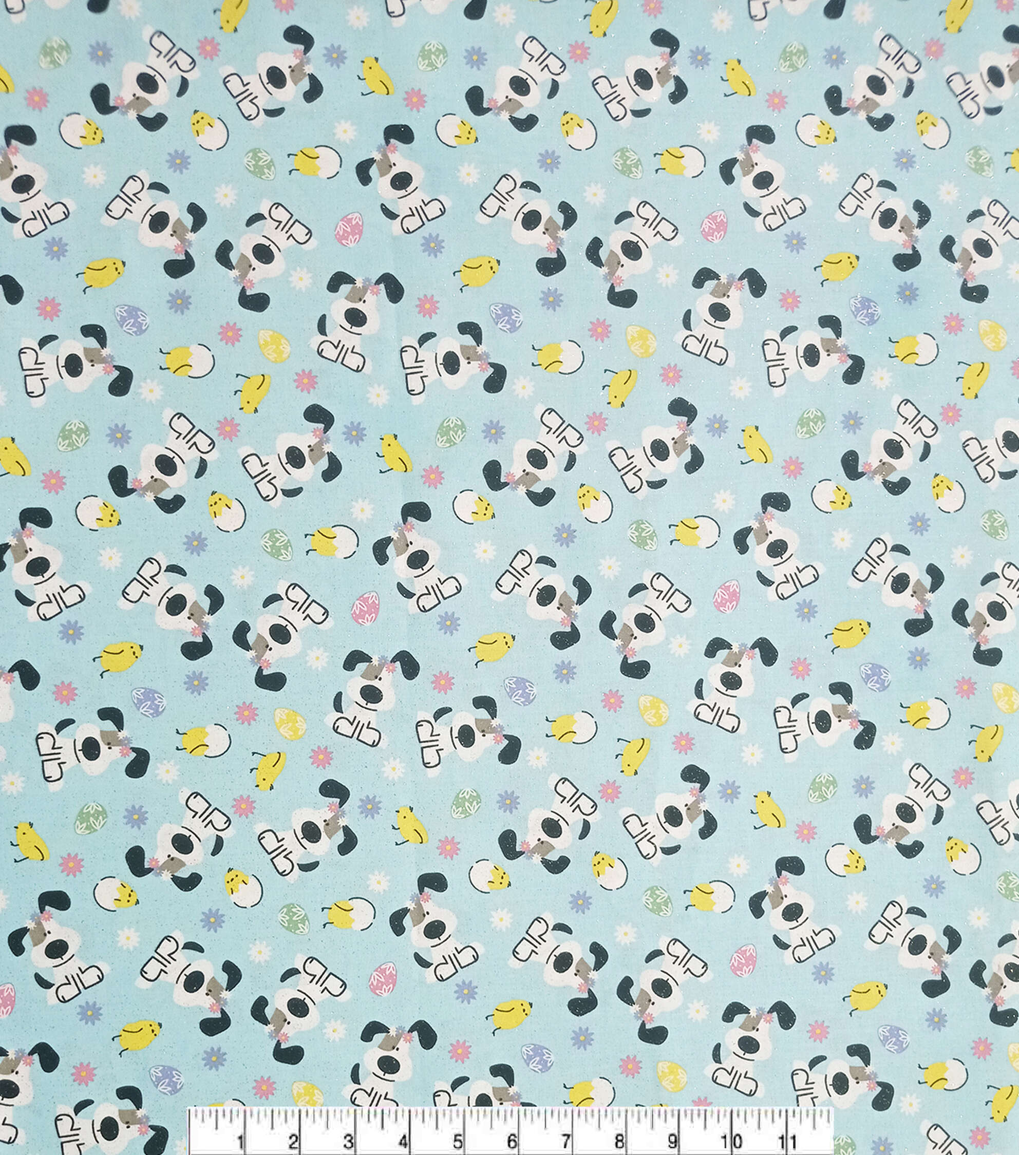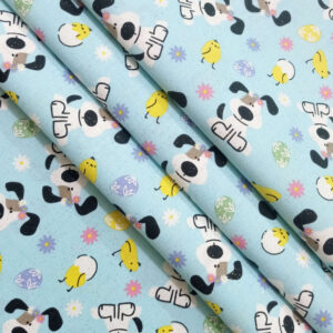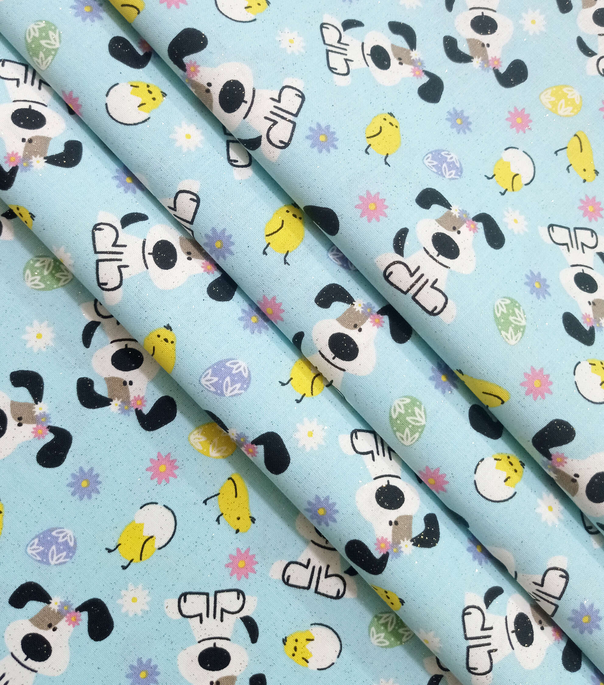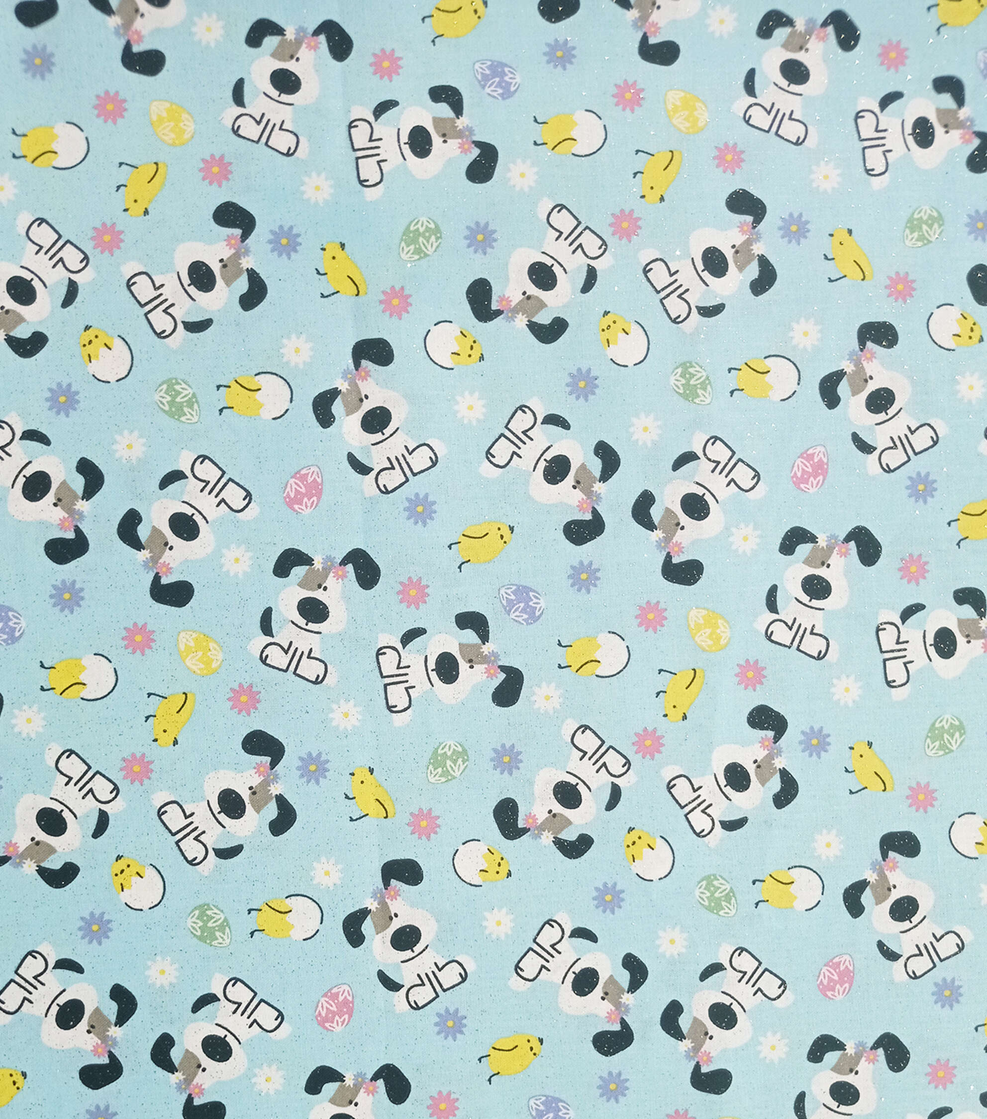 Dog on Blue Easter Glitter Cotton Fabric