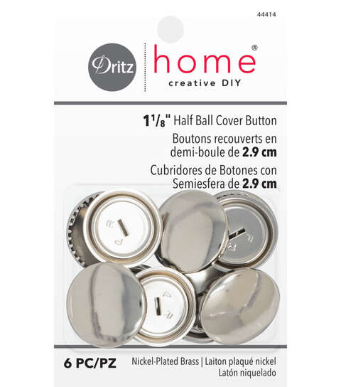 Use the Dritz Home Half Ball Cover Buttons to create custom fabric-covered buttons for apparel and home decor projects. These cover buttons that measure 1.13 inches wide have a nickel-plated brass construction. They are easy to use and require no tools. You can machine wash and dry or dry clean these cover buttons.