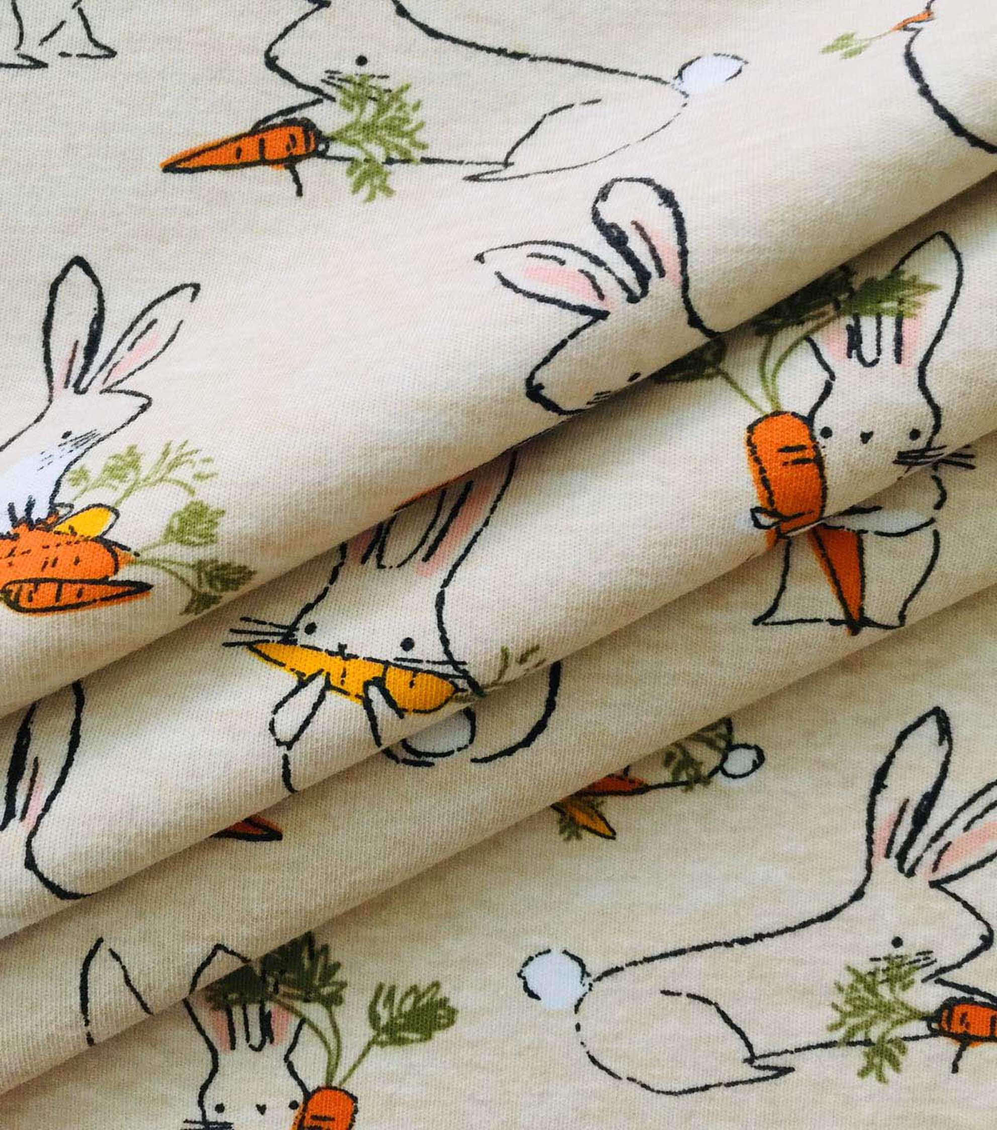 Easter Oatmeal Heather Bunny Interlock Knit Fabric by POP!