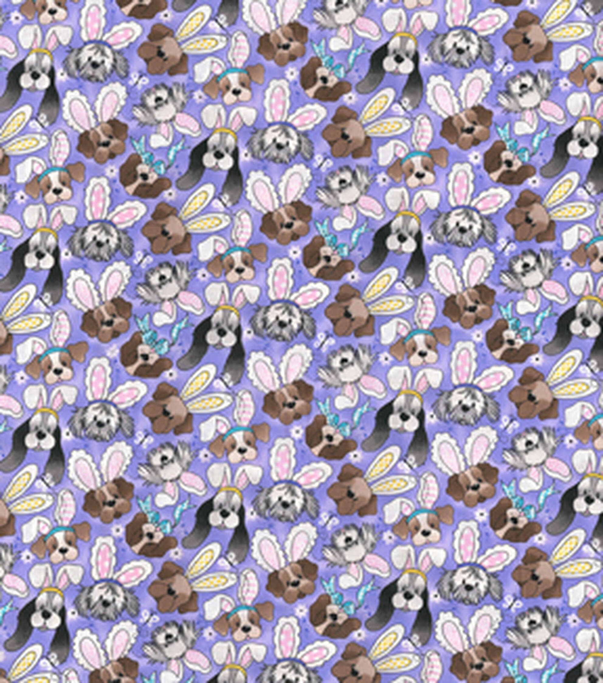 Fabric Traditions Dogs In Bunny Ears Purple Easter Cotton Fabric