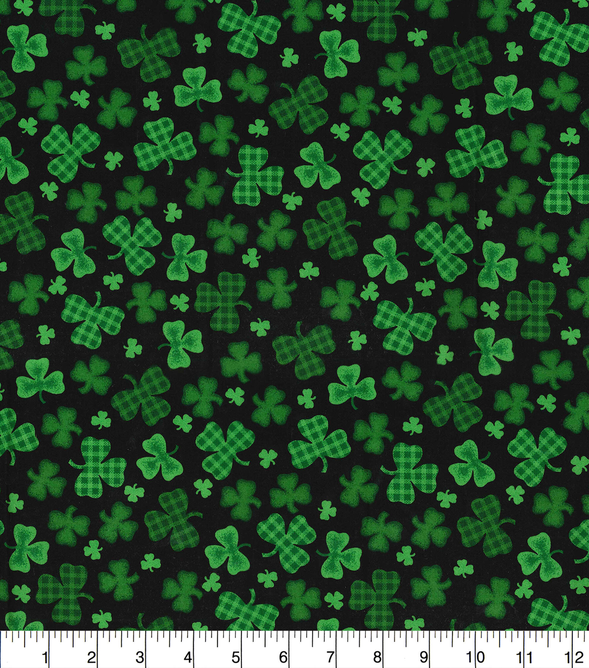 Fabric Traditions Gingham & Solid Clovers on Black St. Patrick’s Day Cotton Fabric