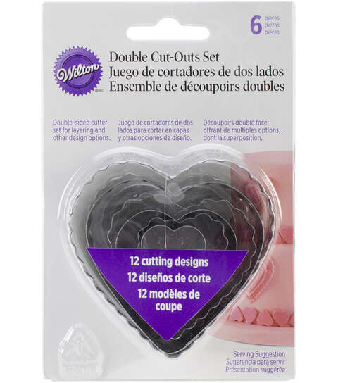 WILTON-Fondant Double Cutters Set. Create a variety of fondant decorations in different sizes to decorate cakes and sweet treats. This durable set features a straight and crinkle side; which gives you twice the cutting options as well as additional layering effects. This package contains six double-sided cutters in a variety of colors. Comes in different designs. Each sold separately. Imported.