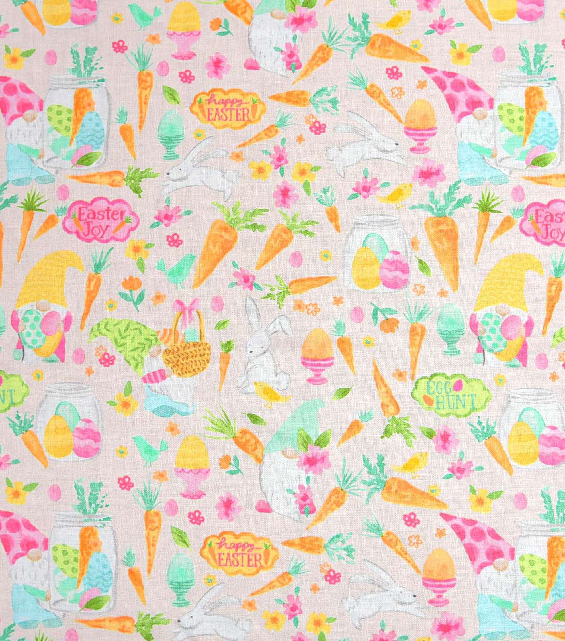 Get Ready for an Adorable Gnome Egg Hunt with our Light Pink Easter Cotton Fabric