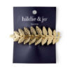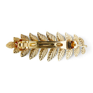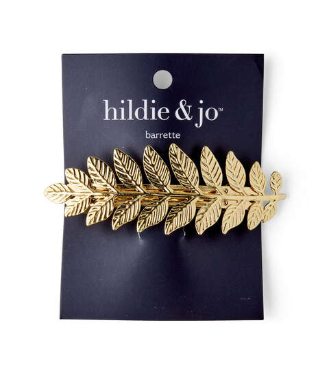 Lend an exquisite and chic look to your hairdo with this one-of-a-kind hildie & jo Leaves Gold Barrette. In smooth gold, the barrette is an intricately designed branch with multiple leaves for visual charm. It’s carved from iron and features an auto lock closure for ease of use. Tuck in anything from a messy waterfall to side ponies and more using this gorgeous piece of hair accessory.