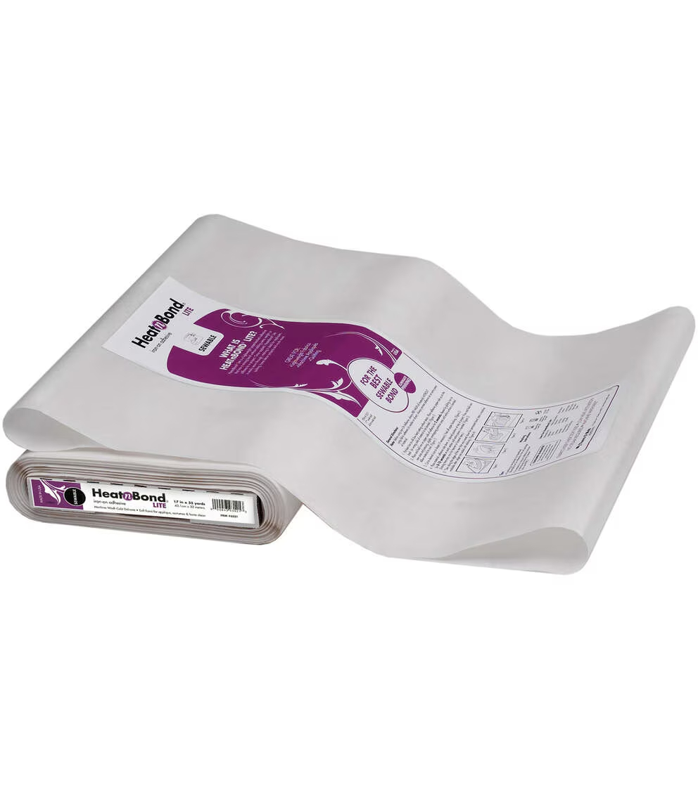 HeatnBond Lite is a paper backed, iron-on, sewable, double-sided adhesive for bonding fabric without extra weight or stiffness. Use it in place of pinning or basting for appliqué shapes on quilts, wall hangings and attire. Draw or print directly on the paper backing to easily design appliqué pieces!