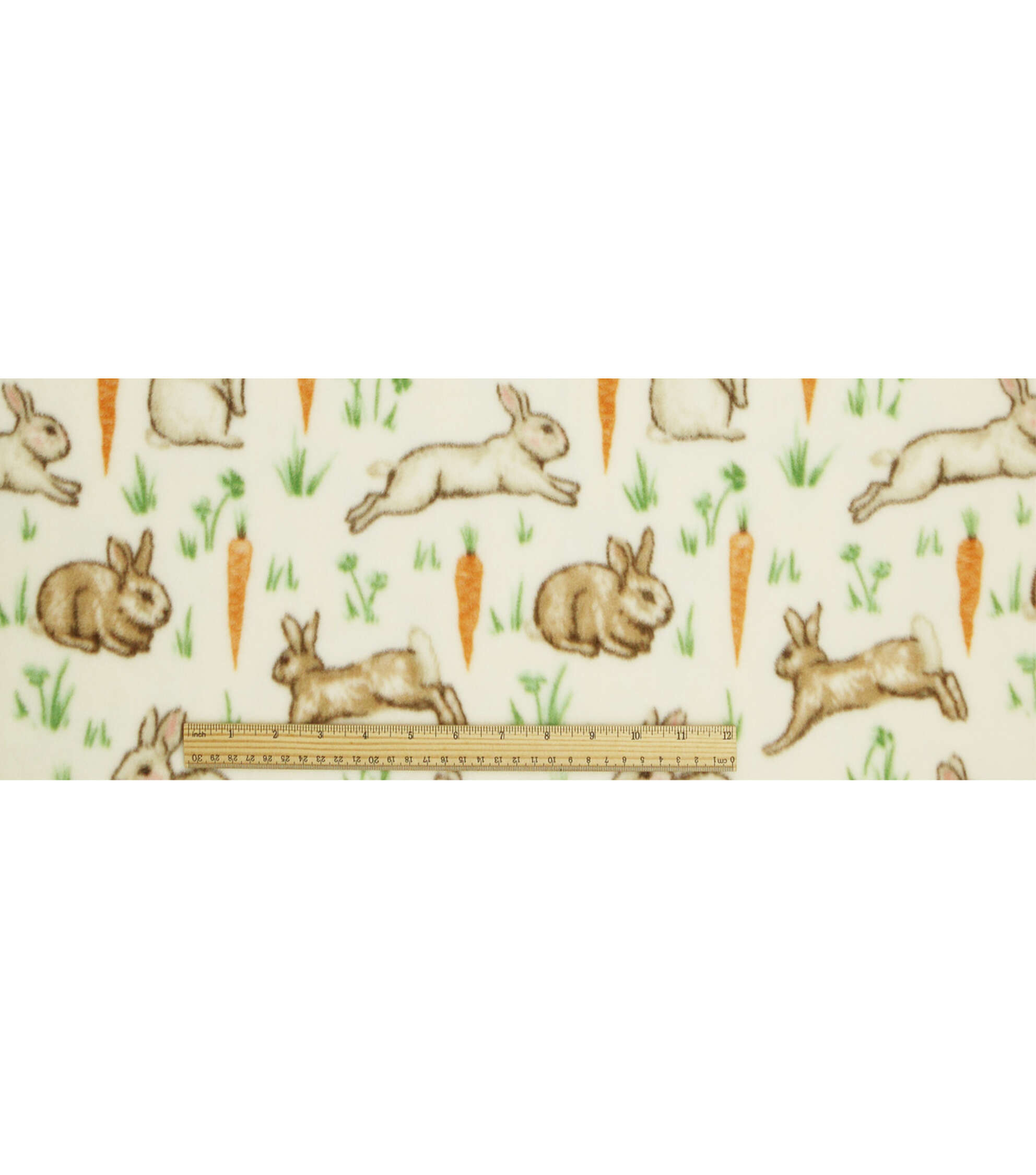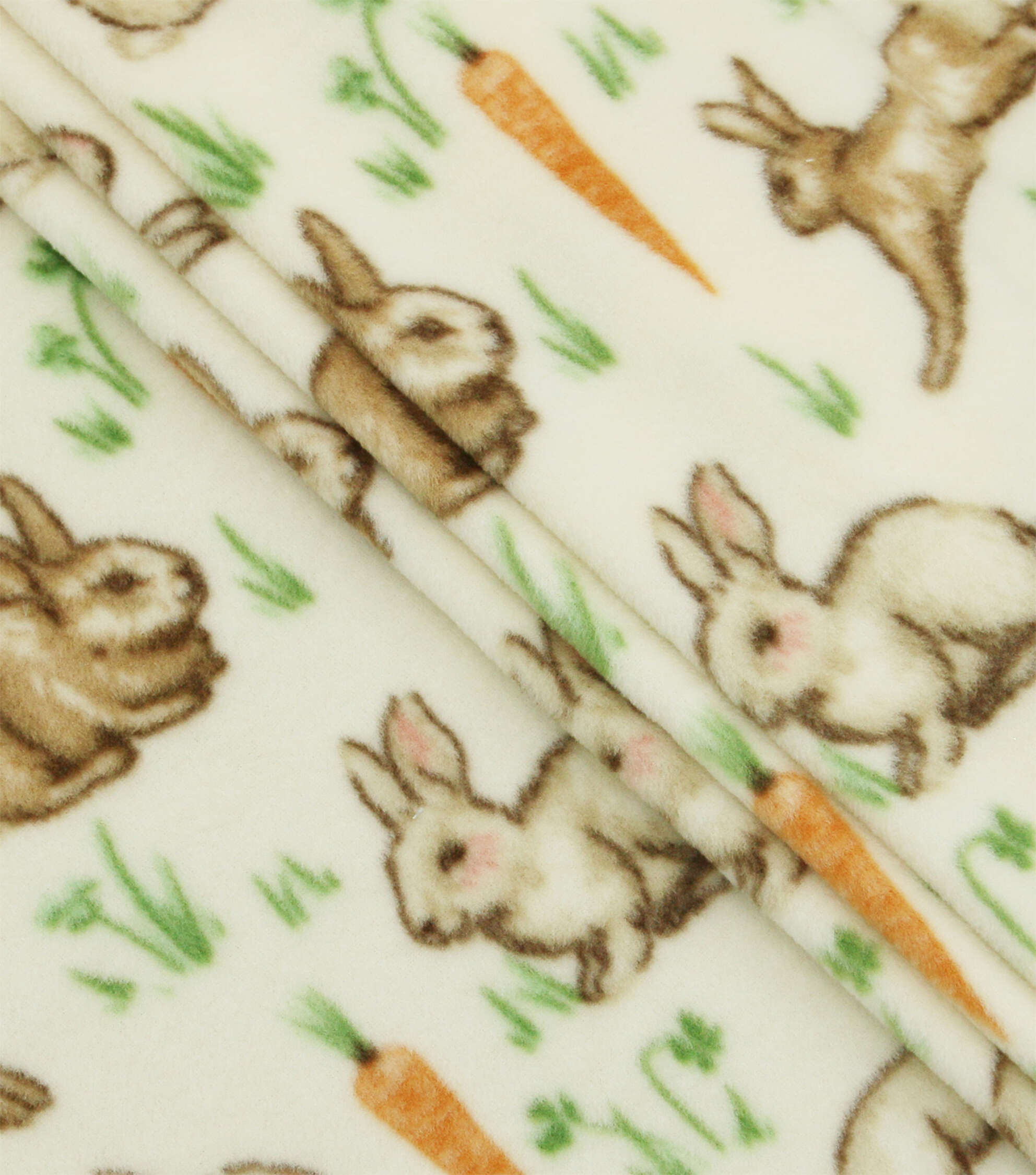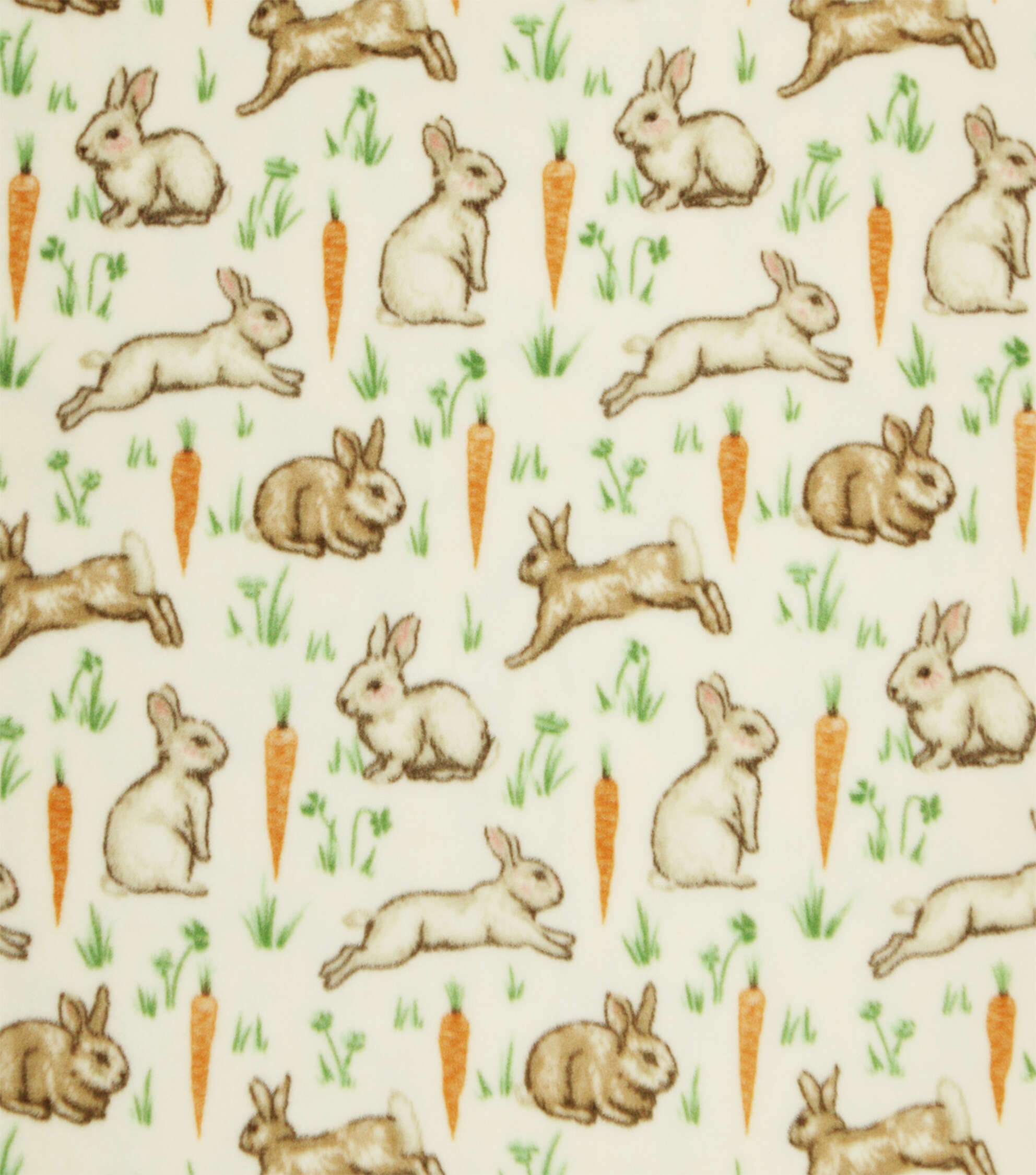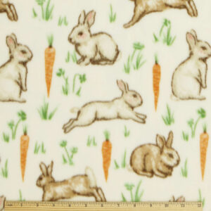 Get Comfy with Hopping Bunnies on Cream Anti Pill Plush Fleece Fabric