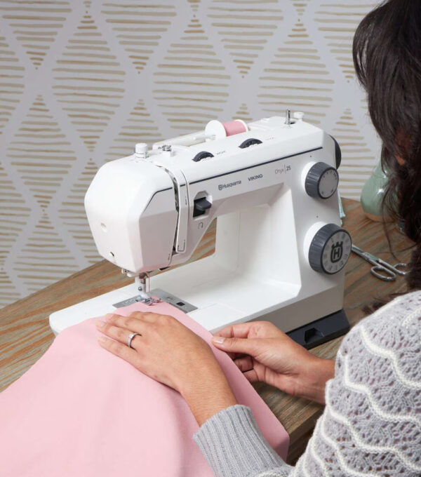 The Onyx™ 25 sewing machine combines a dependable mechanical interface with modern sewing features, perfect for utility stitching and beyond. With 32 stitches, auto needle threader, and sewing advisor cards, the ONYX™ 25 is an easy-to-use mechanical sewing machine with beyond-basic sewing features that give you room to grow your skills.