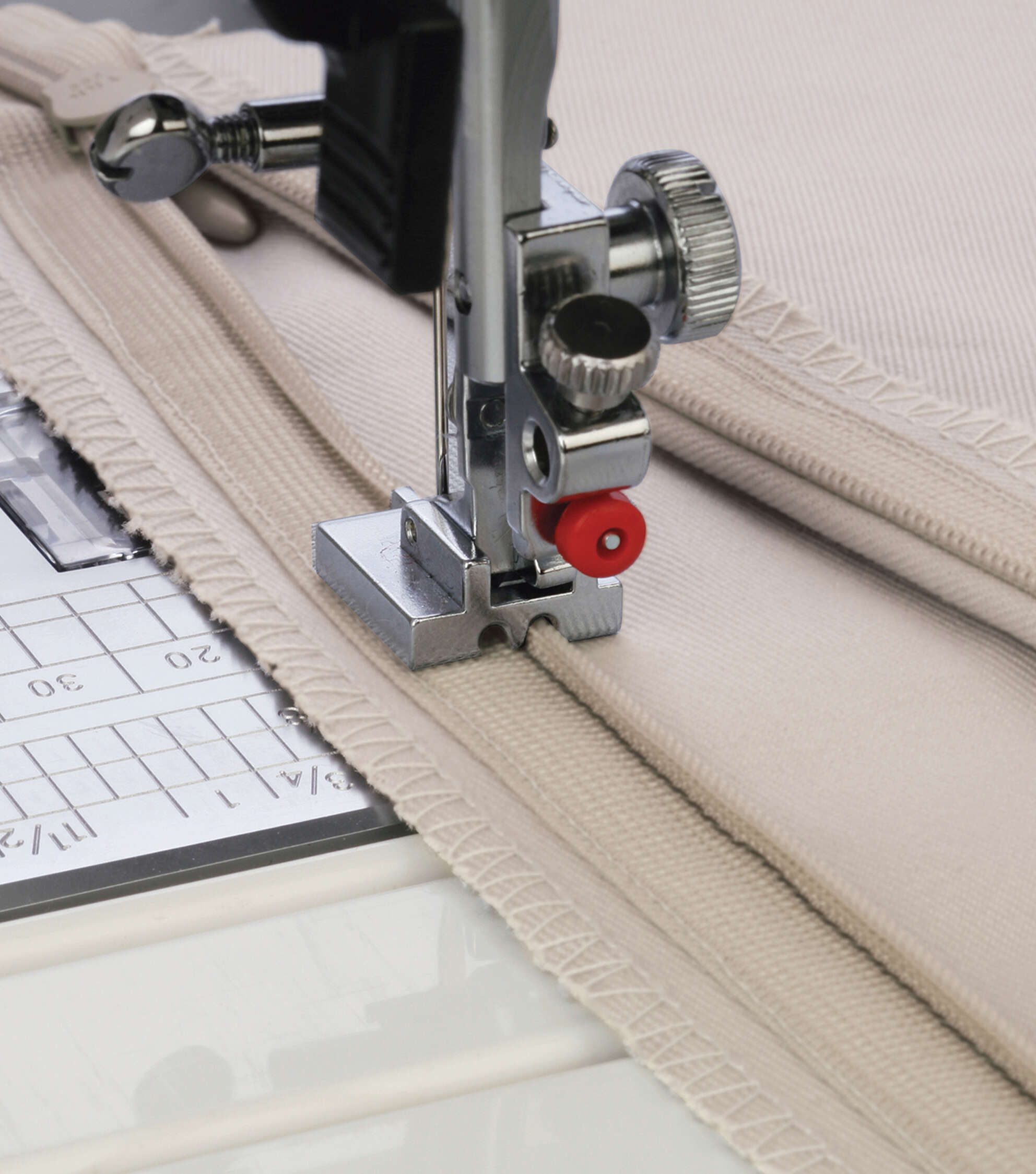 - Channels on both sides of the foot to accommodate both sides of the zipper.
