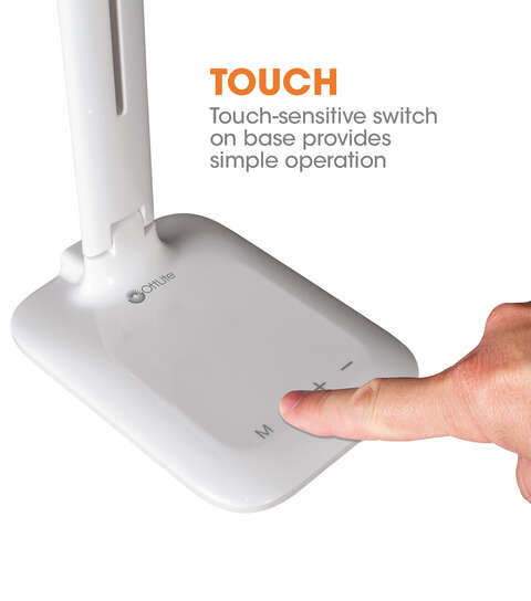 See every color and detail with ease with the OttLite Slimline LED Desk Lamp. Trusted by people who love to sew and craft, OttLite’s exclusive ClearSun natural daylight LED technology has a color rendering index of 95+ so you can select and match colors with total confidence. The Slimline LED Desk Lamp also features two additional color modes – warm white and bright white. With 5 brightness levels, select the brightness level that works best for your space. This sleek design features two points of adjustment so you can change position as you work from a height of 19 inches to 5 inches.