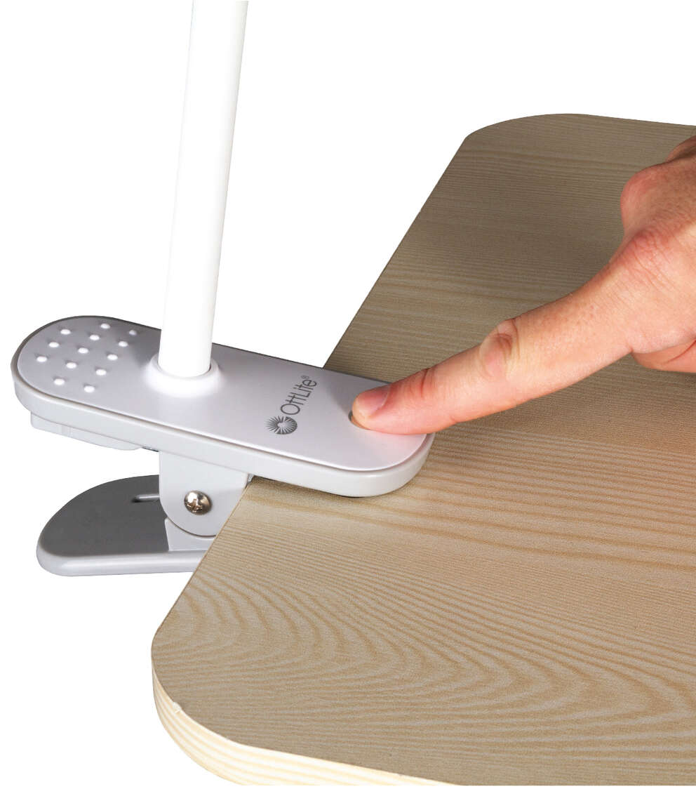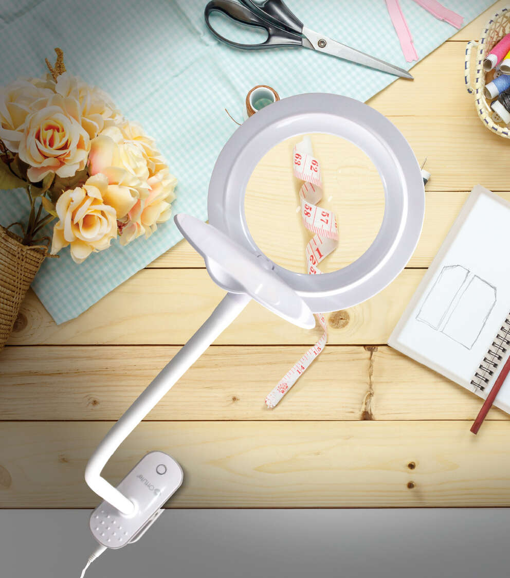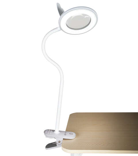 The OttLite Lighted Magnifier Clip Lamp is a lamp and magnifier all in one. The super flexible 15.5 inch neck holds position to direct light right where you need it and the sturdy clip holds tight to bookshelves, tables and more. The 3-3/8 inch, 1.75x optical-grade magnifier with a 4x spot viewer helps you see intricate details with ease and is surrounded by the natural daylight illumination of ClearSun LEDs to see colors and details clearly. The flip cover on magnifier closes to protect lens when not in use. Plus, use the touch switch to choose from three brightness levels to customize the lighting to suit your needs.