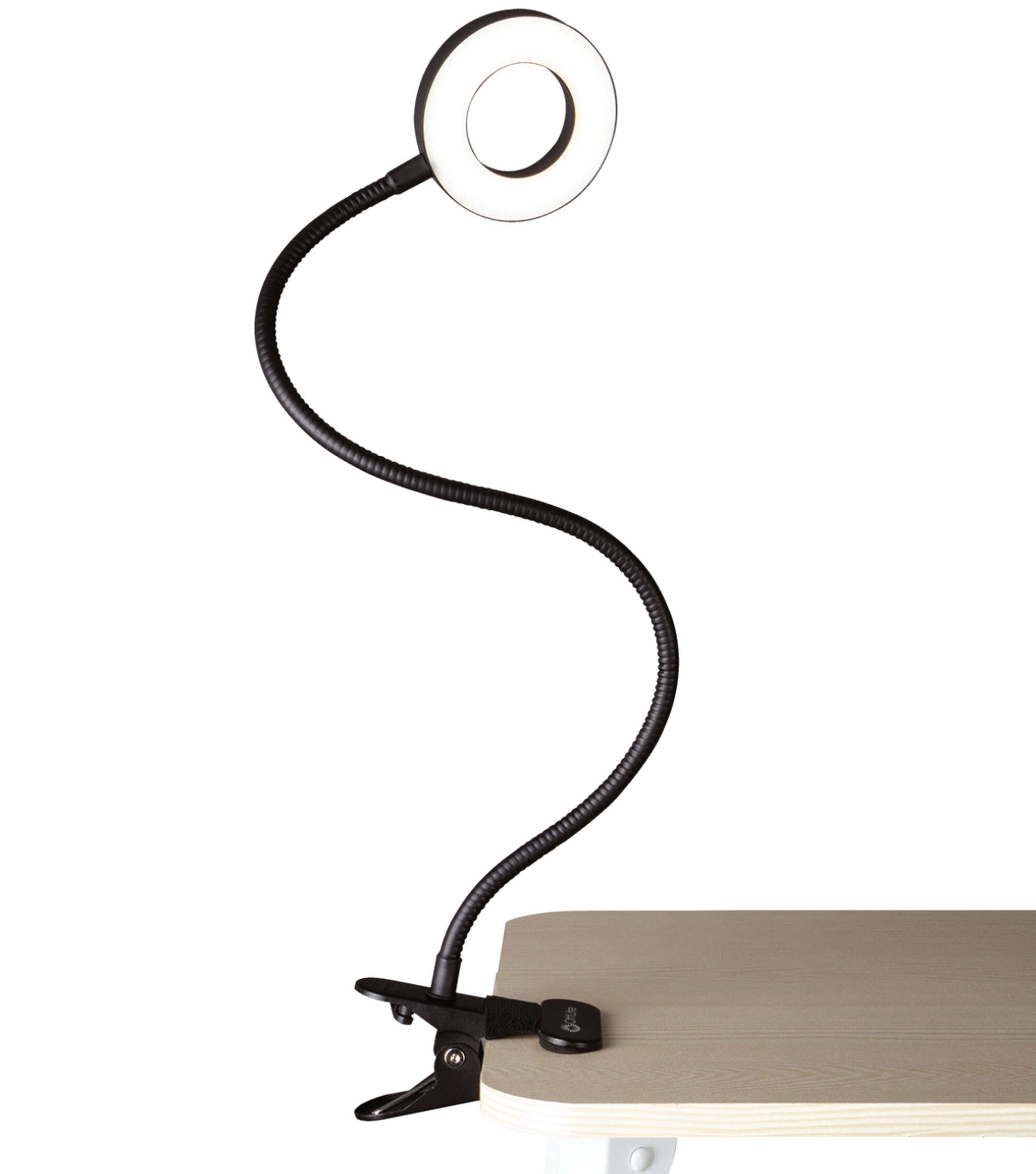 Grab the perfect selfie, shine some extra light for your video call, light your workspace beautifully. The OttLite Dimmable Ring Light with Clip provides versatile lighting that you can position perfectly with the 20+-inch long neck and sturdy clip. Great as a desk lamp for reading, computer work and projects, this ring light features ClearSun LED technology to reduce eyestrain and glare. And, with three dimmable color temperatures (warm light, bright white and ClearSun natural daylight), you can easily create the lighting effect you want. To operate, simply plug into a standard USB port on your computer or adaptor (adaptor not included).