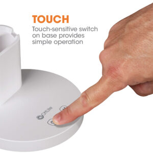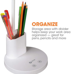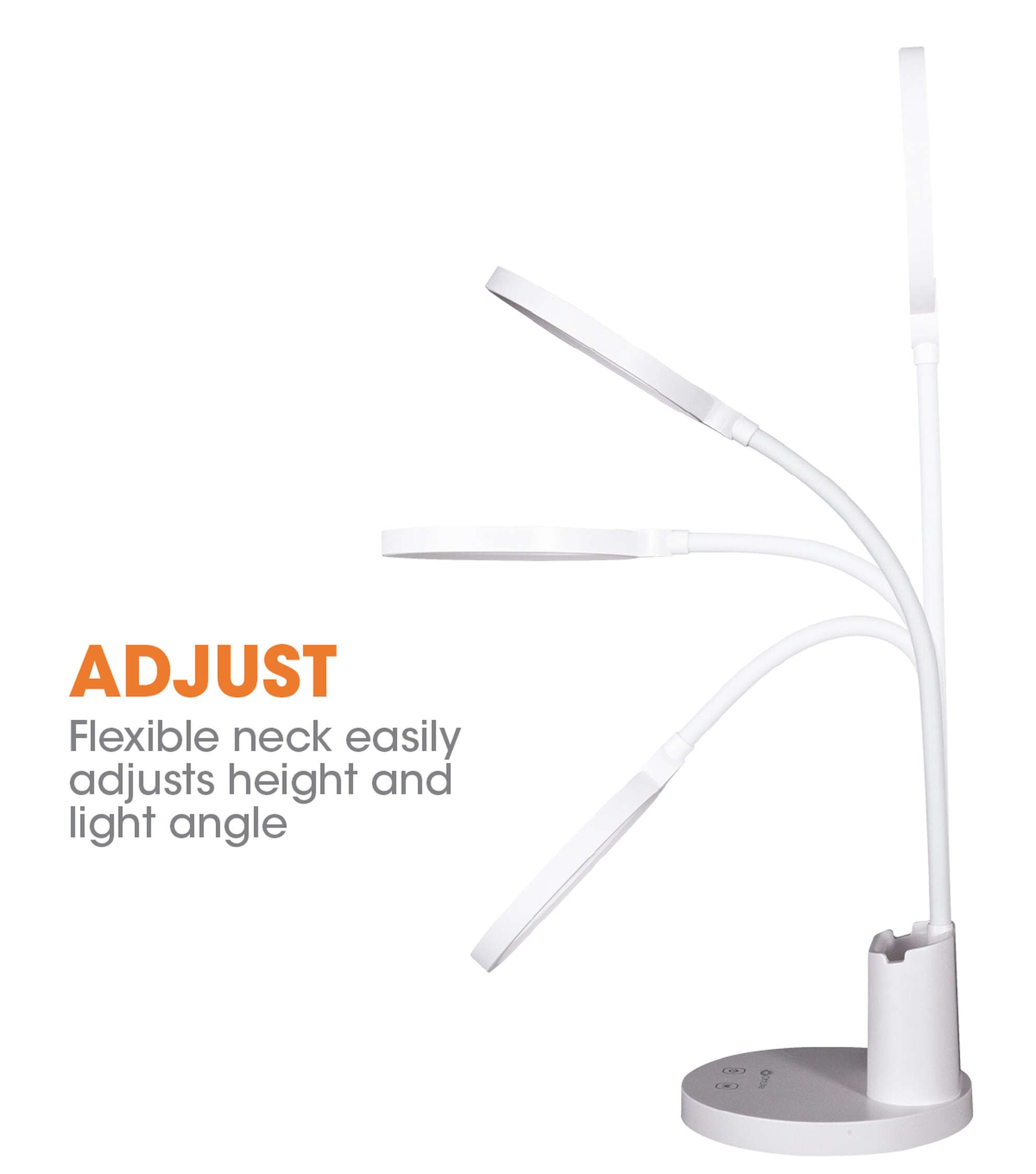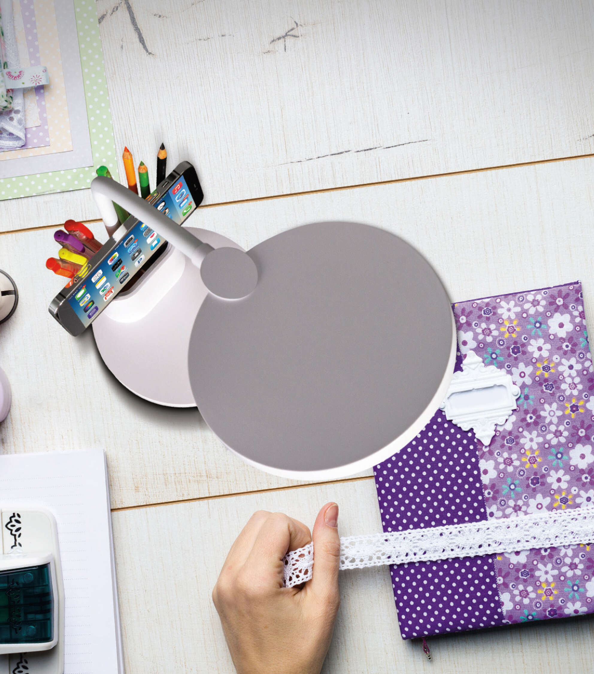 Easily move the OttLite Rechargeable LED Lamp with Phone Holder from coffee table to dining room table to craft room – wherever your creativity takes you! This rechargeable lamp is equipped with a lithium-ion battery. Just charge with the provided USB charging cable and you’re ready to move. See every detail clearly and color accurately with OttLite’s exclusive ClearSun LEDs – shown to reduce eyestrain by up to 51%. Position the natural daylight illumination over your work area with the flexible neck and wide 5.375 inch diameter shade. Store key supplies in the base or use the base as a mobile phone stand – great for watching videos.