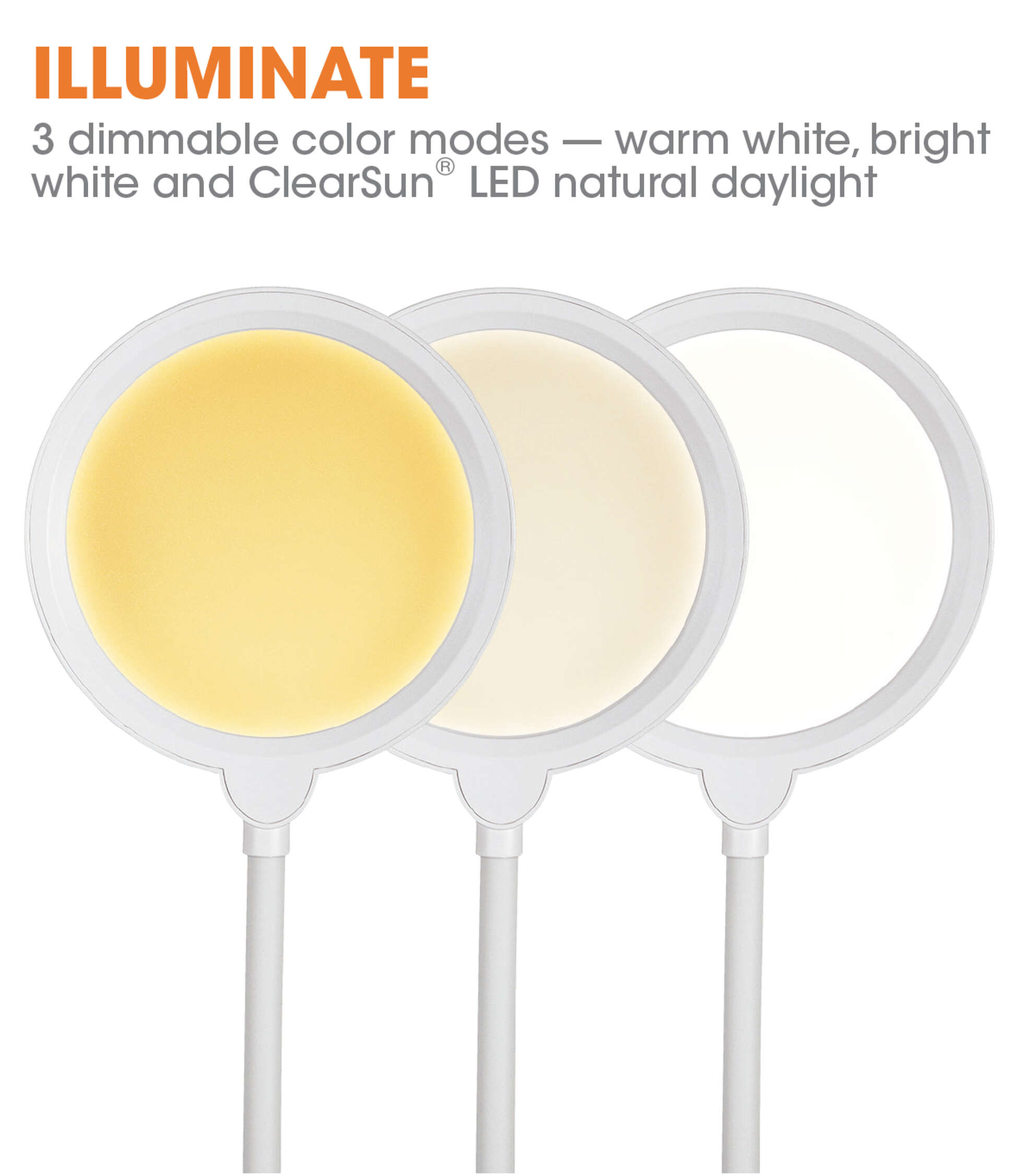 - Proprietary, exclusive OttLite ClearSun LED – reduces eyestrain by 51%