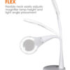- Flexible neck easily adjusts to magnify and illuminate the area you need most