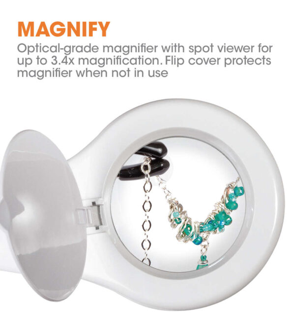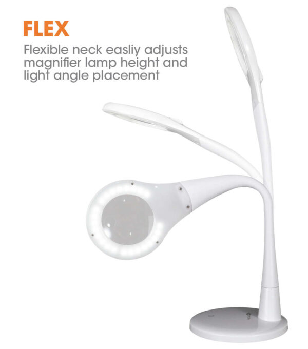 - Flexible neck easily adjusts to magnify and illuminate the area you need most