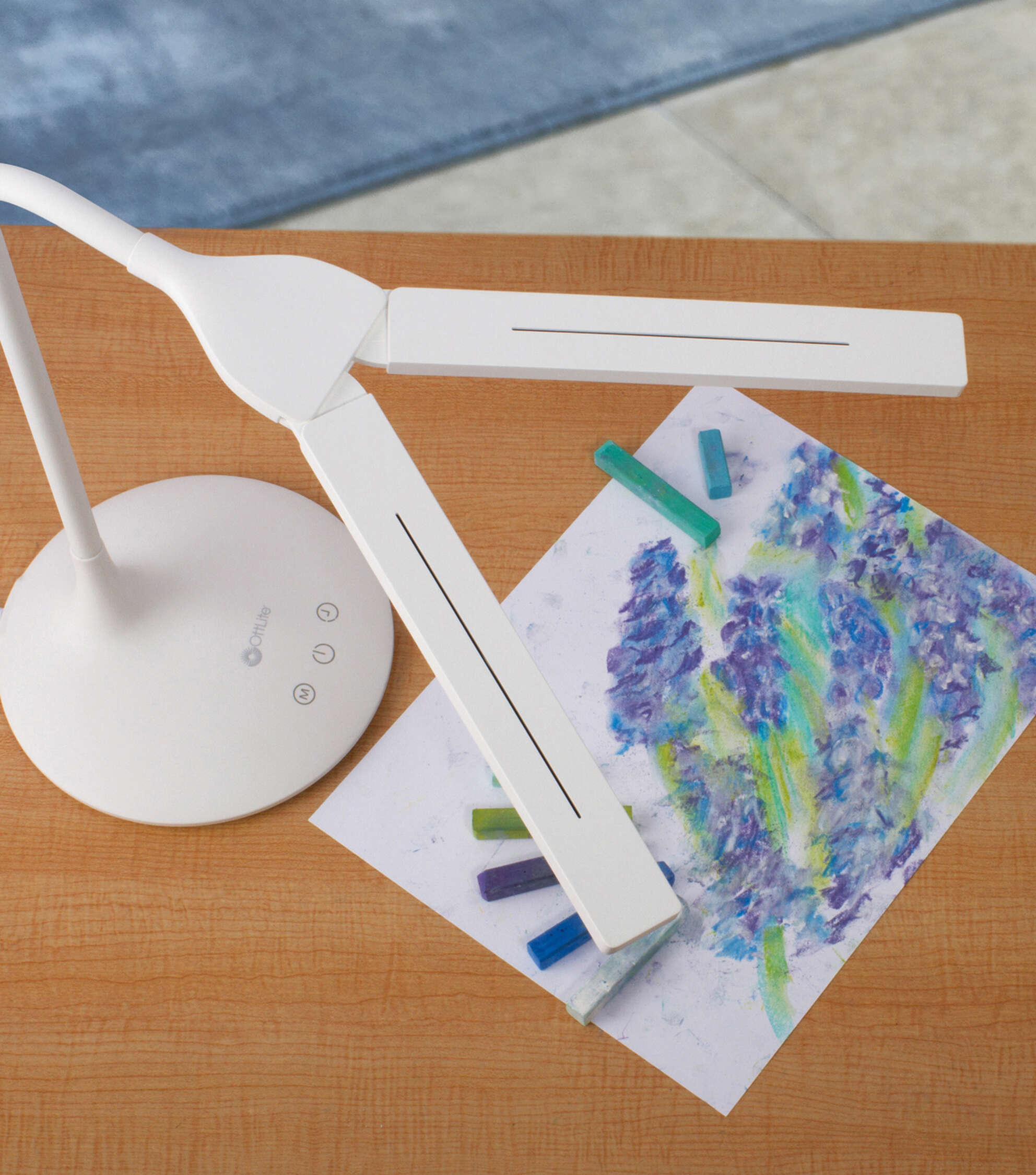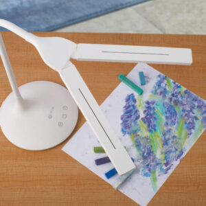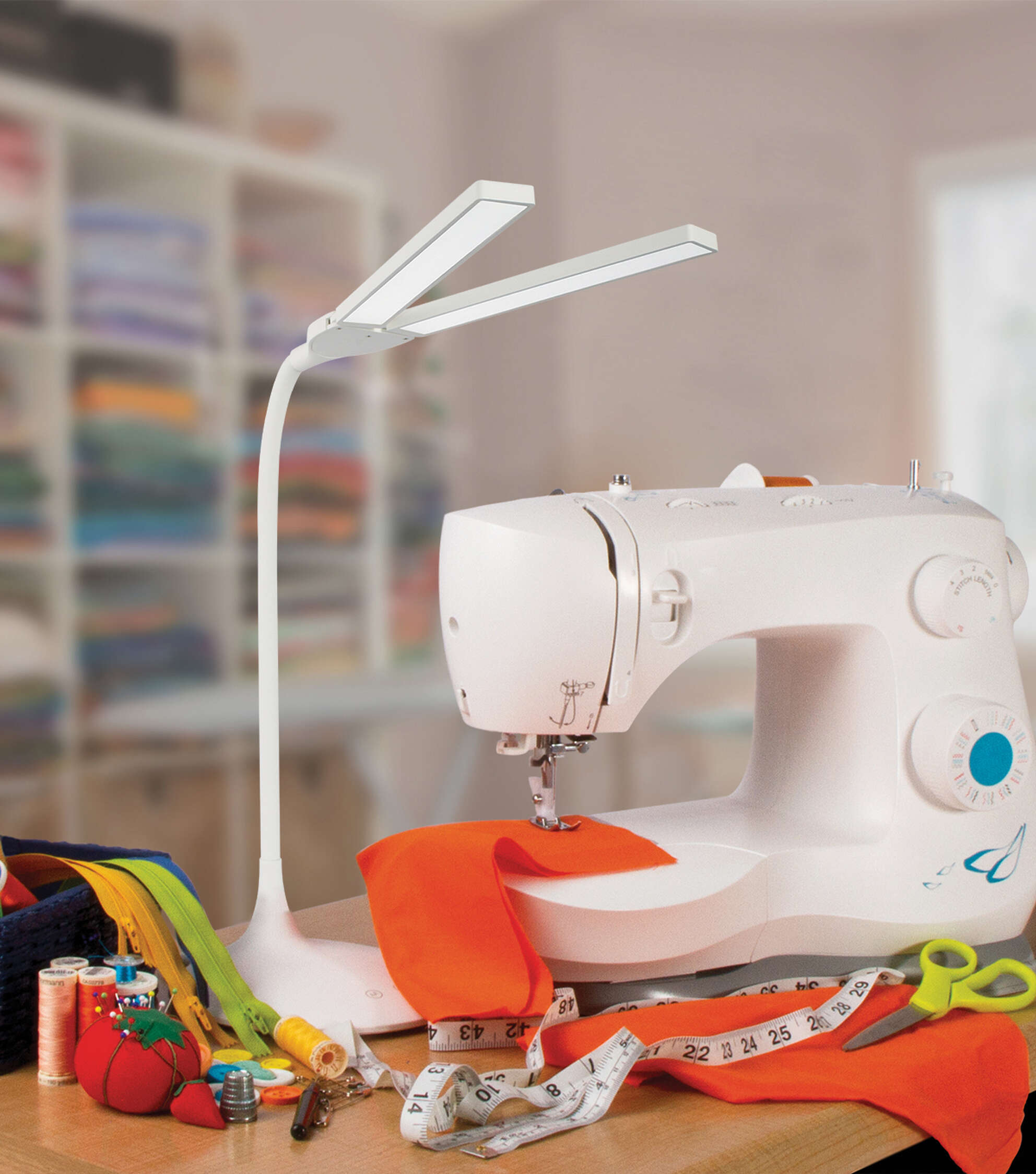 With a dual head design that pivots to 180 degrees or anything in between, the OttLite Lighting Dual Head LED Desk Lamp is the perfect crafting lamp for any room in your home. Dimmable brightness levels and three color modes allow for perfectly customized lighting. There’s also a 40-minute shut off timer in case you like to craft at the end of the evening. With OttLite you’ll see every color accurately and detail clearly with reduced glare and eyestrain so you can do what you love, longer. It features two 7.63-inch long shades. Dual pivoting shades move independently to provide two individual or one concentrated light source. Flexible neck easily adjusts the light angle over your projects. Touch activated control panel for selection of color mode, dimming feature and timer. Super bright natural LEDs rated to last up to 40,000 hours.