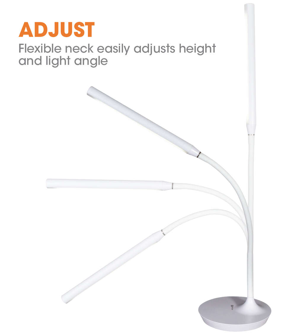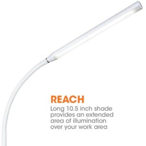 Great for projects large and small, the OttLite Extended Reach LED Desk Lamp features a 10.5 inch shade and super flexible neck that holds position over your work area and lets you easily adjust as you work. With OttLite’s exclusive ClearSun natural daylight LED technology, you’ll see every detail clearly and color accurately. OttLite ClearSun LEDs have a Color Rendering Index of 95+ so you can make color decisions with total confidence. With the touch activated controls, choose from three brightness levels to shine just the right amount of light over your project. With OttLite you’ll see every color accurately and detail clearly with reduced glare and eyestrain so you can do what you love, longer.
