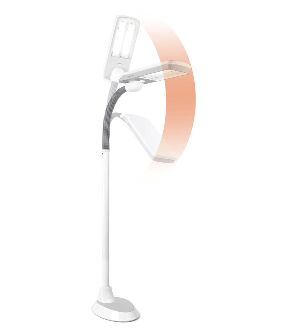 Illuminate your craft space with the OttLite 36W Floor Lamp. This 36-watt rotating shade floor lamp has two 18-watt tubes, which provide powerful illumination in a floor lamp. It also features a 45degree pivoting shade, flexible neck, and two brightness settings, which provide a wide range of lighting options. Use one or both of the tubes for the amount of light you need.