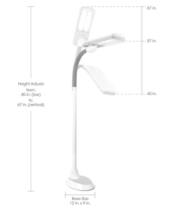 Illuminate your craft space with the OttLite 36W Floor Lamp. This 36-watt rotating shade floor lamp has two 18-watt tubes, which provide powerful illumination in a floor lamp. It also features a 45degree pivoting shade, flexible neck, and two brightness settings, which provide a wide range of lighting options. Use one or both of the tubes for the amount of light you need.