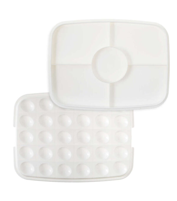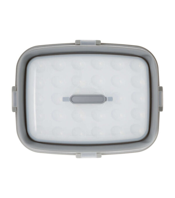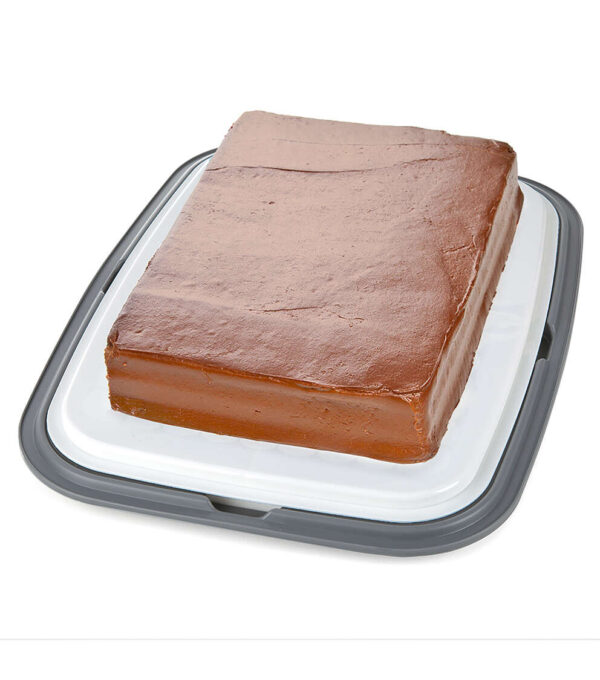 Transport cakes, appetizers & more with this versatile carrier. The flat side of insert is perfect for transporting a 9 by 13 sheet cake and features a built in slicing guide. COLLAPSIBLE and DURABLE. This dishwasher safe carrier includes 2 trays: a reversable divided appetizer or cake tray and a deviled egg tray. Tray nests inside carrier lid which collapses to half its original height. Collapse to store, expand to use.