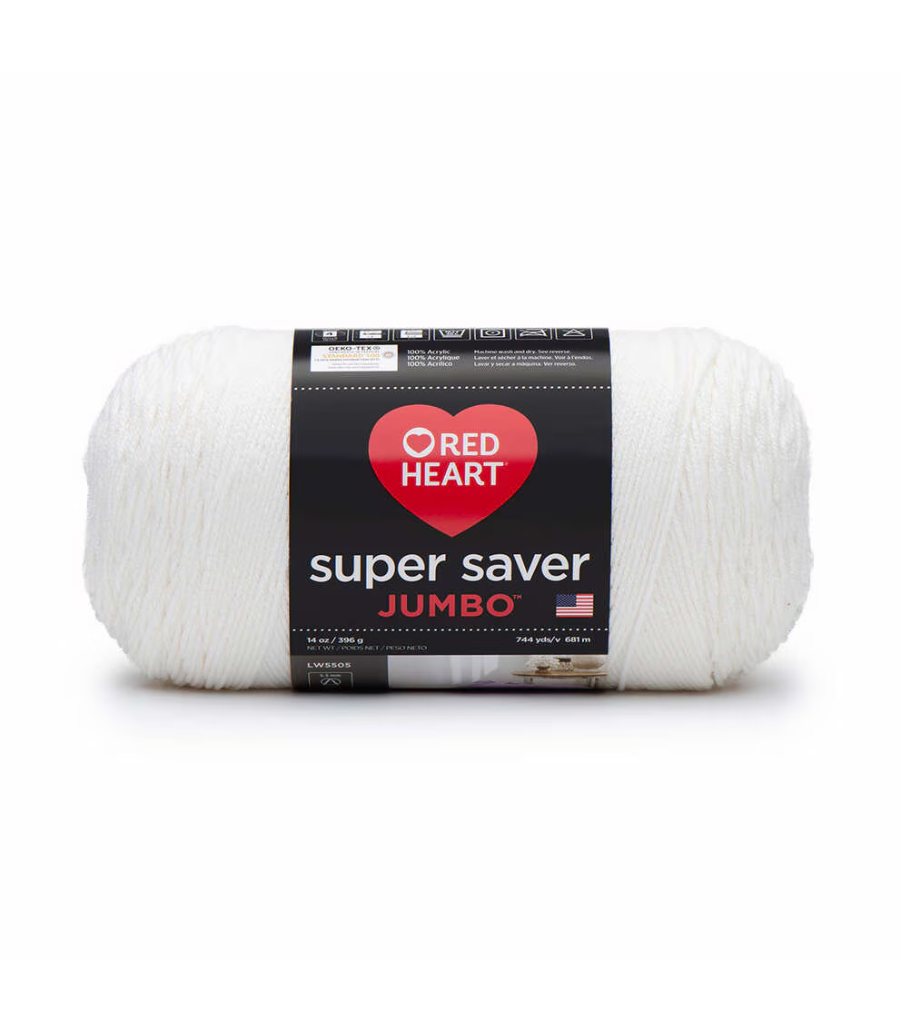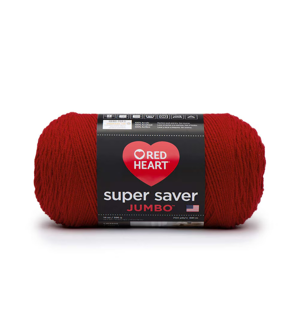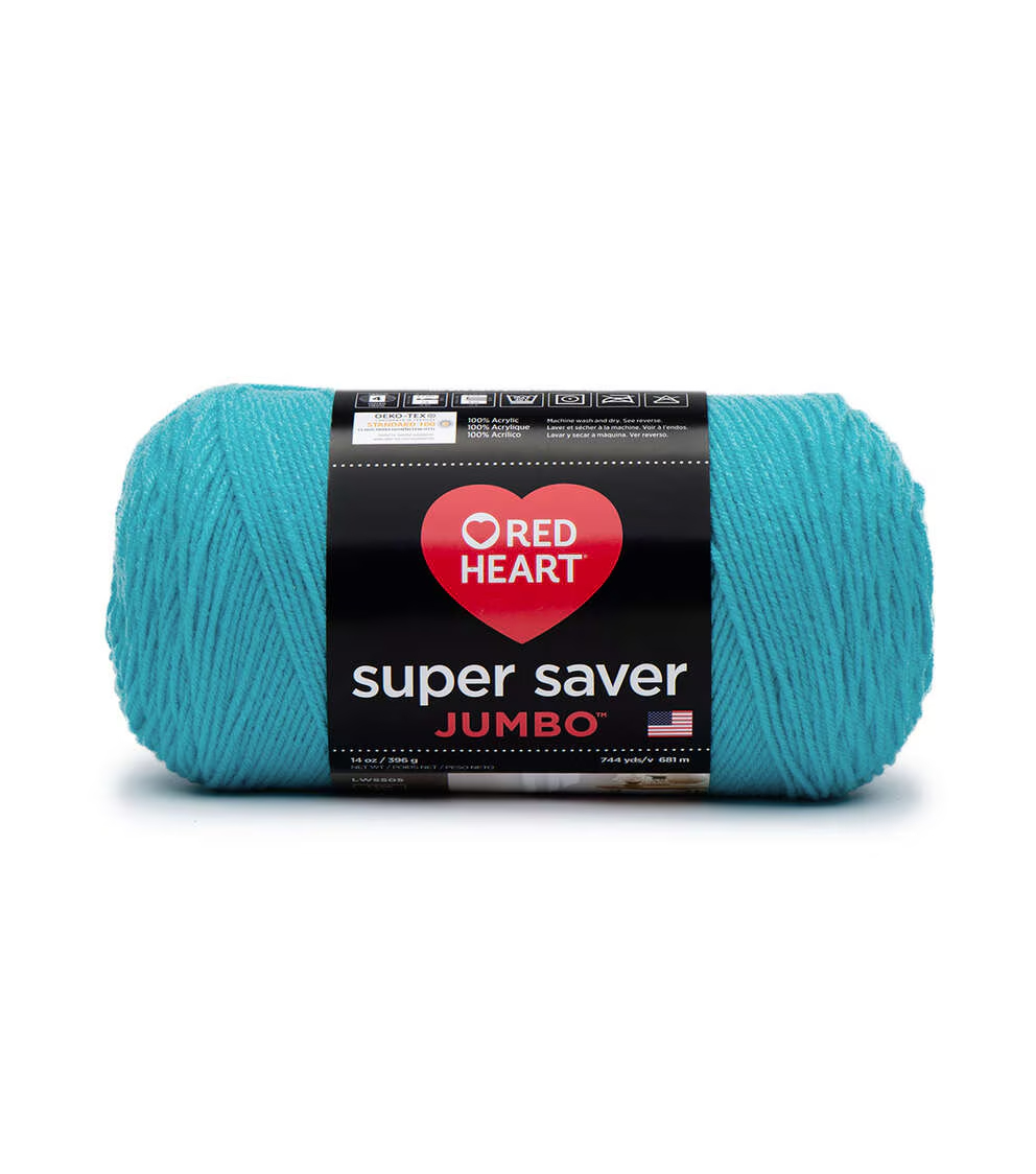 Red Heart Super Saver Jumbo yarn is the same Super Saver yarn you love in larger skeins. Each Super Saver Jumbo skein is the size of two skeins of the regular Super Saver, so you have half as many ends to weave in. Just like Super Saver, Super Saver Jumbo is Made in the USA and has no-dye-lot solids. Super Saver Jumbo is ideal for sweaters, afghans, and other projects requiring large quantities of yarn. This product holds the OEKO-TEX Standard 100 certification.