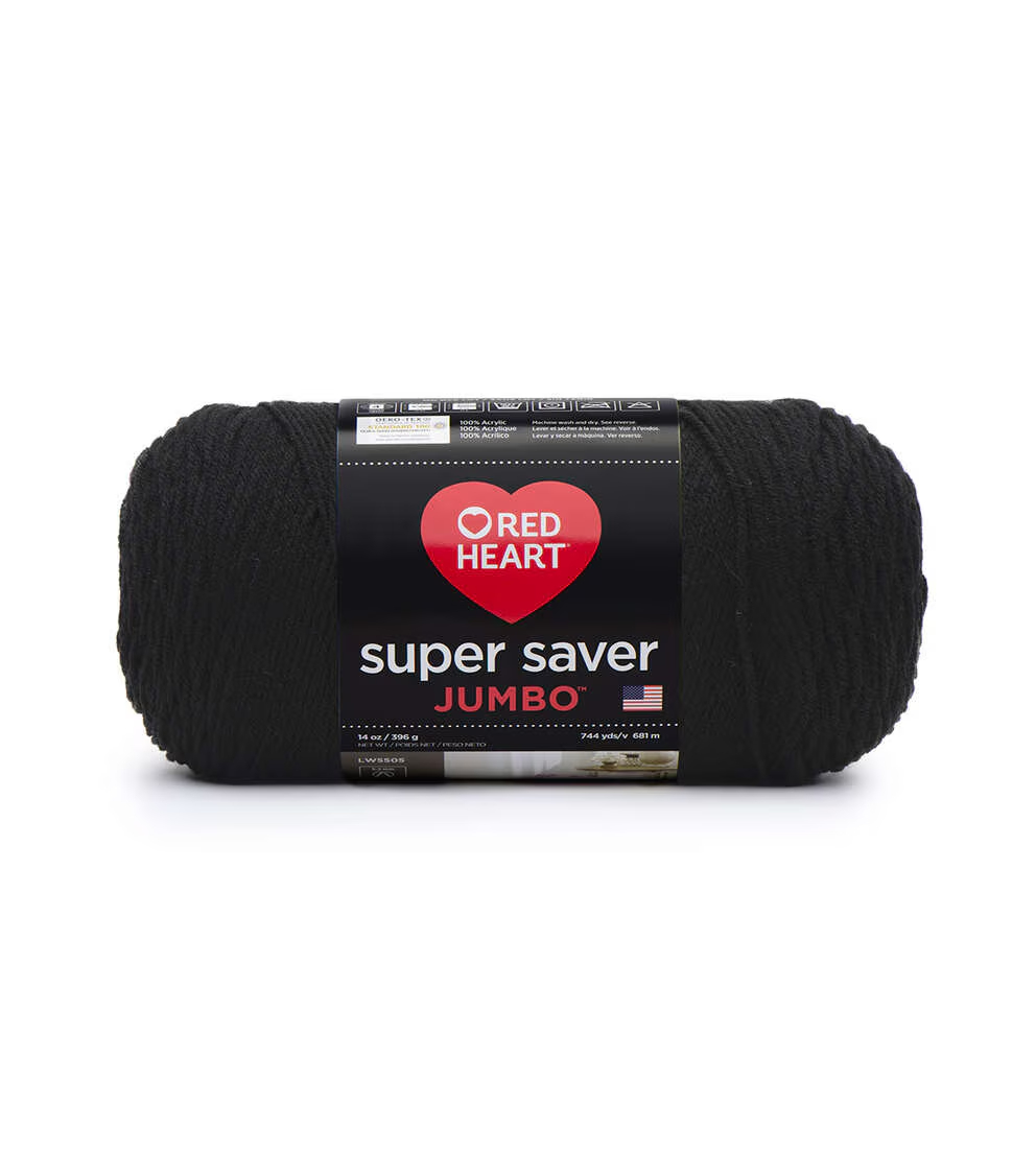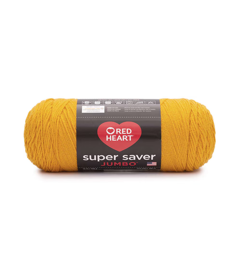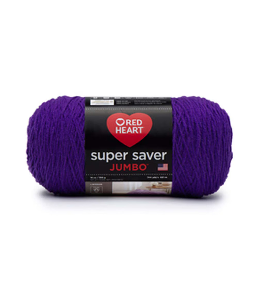Red Heart Super Saver Jumbo yarn is the same Super Saver yarn you love in larger skeins. Each Super Saver Jumbo skein is the size of two skeins of the regular Super Saver, so you have half as many ends to weave in. Just like Super Saver, Super Saver Jumbo is Made in the USA and has no-dye-lot solids. Super Saver Jumbo is ideal for sweaters, afghans, and other projects requiring large quantities of yarn. This product holds the OEKO-TEX Standard 100 certification.