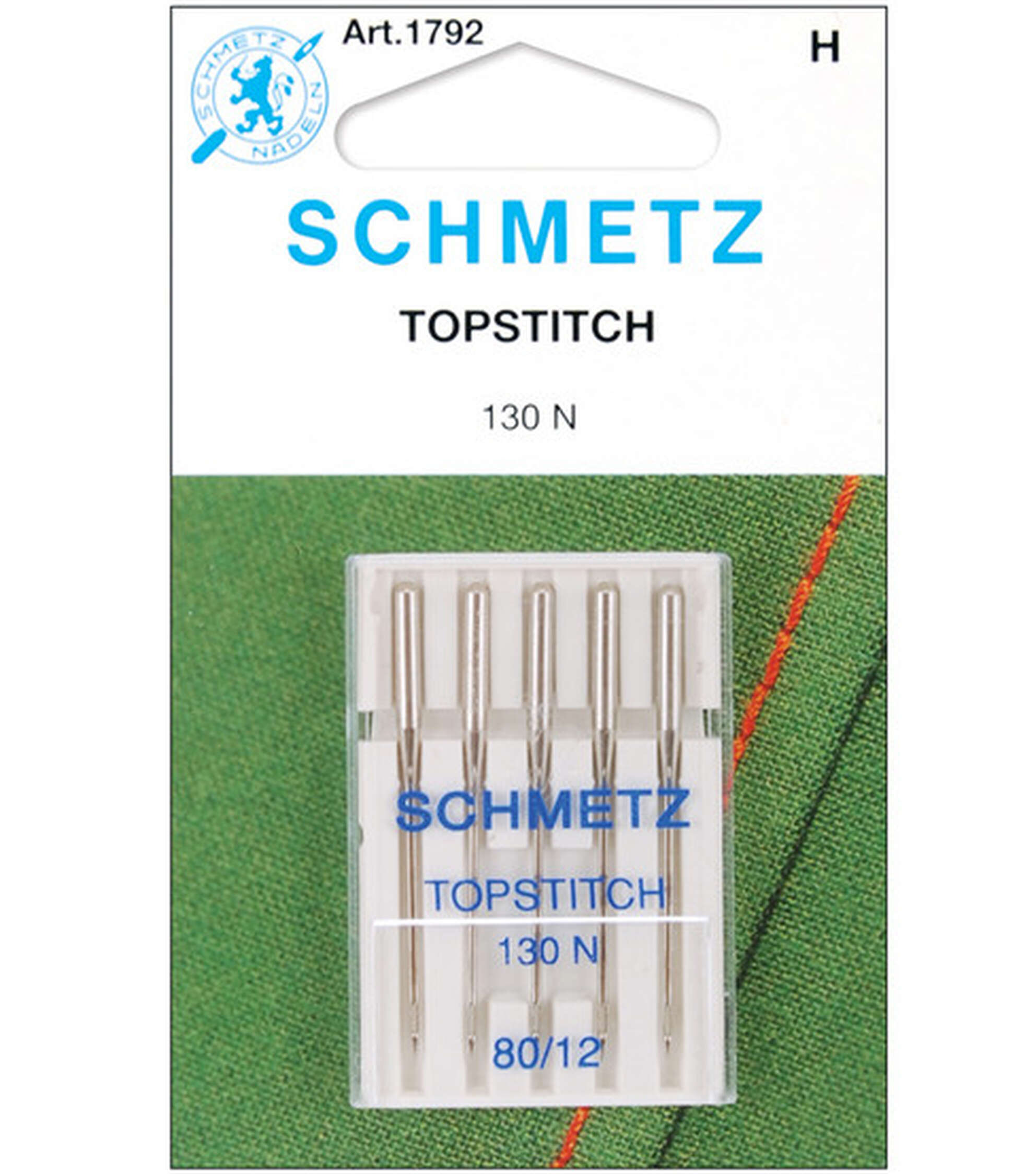 Design apparel, home decor accents and more with the Schmetz Topstitch Needles Machine Needles. This pack includes five Topstitch Needles machine needles in sizes 4 and 8. These sharp needles are designed with a large eye and a huge groove to accommodate Topstitch Needles threads. Use them along with a straight stitch plate, sold separately, to stitch straight lines onto drapes, cushion covers and more.