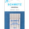 Designed for versatility and a long life, the Schmetz Universal Machine Needles Size 90/14 Pack of 5 is a valuable addition to your sewing kit. This pack features five general-purpose needles that are suitable for all kinds of woven or knit materials. You can use these universal machine needles with all household sewing machine brands. Available in a variety of sizes, each sold separately. Always select needle sizes based on the weight of your fabric.