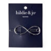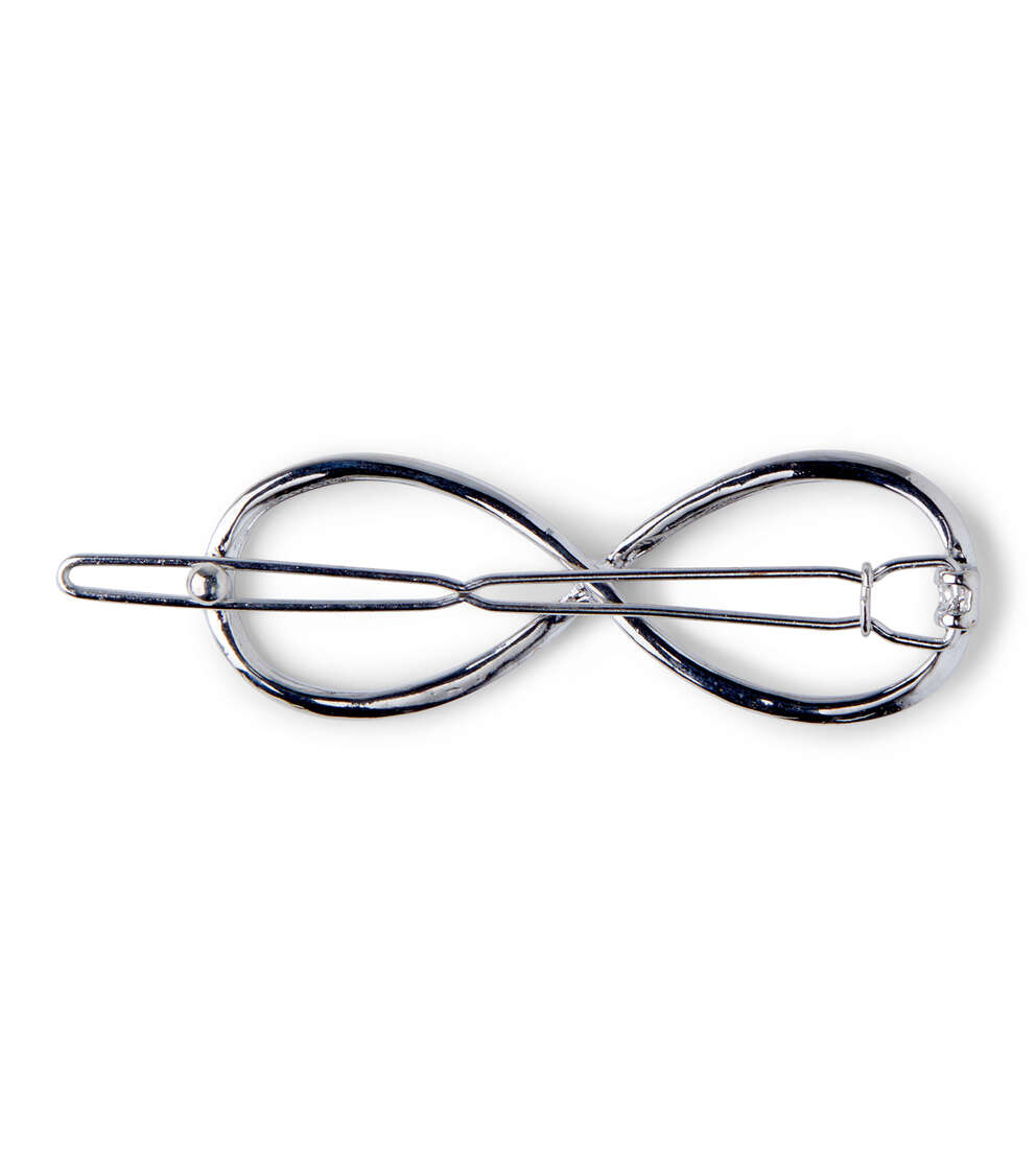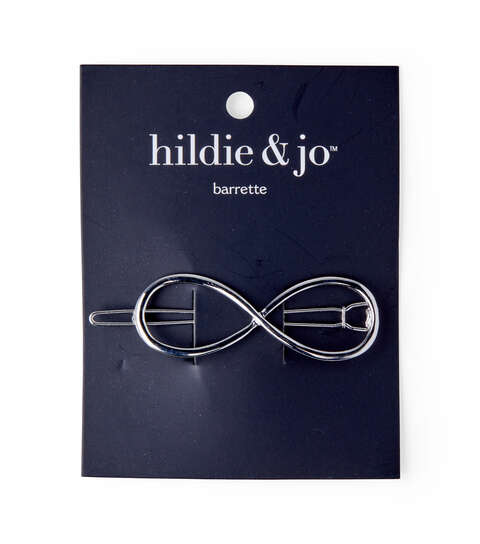 Enhance the visual charm of your hairdo with this gorgeous hildie & jo Infinity Silver Barrette. This silver barrette flaunts artsy elements through a figure eight design that creates the perfect ‘Infinity’ look. It’s carved from iron and zinc alloy, and comes with a clip closure for ease of use. Use this gorgeous piece of accessory to tuck in anything from a messy waterfall to side ponies and more.