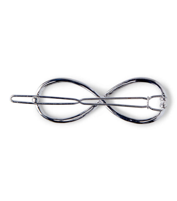 Enhance the visual charm of your hairdo with this gorgeous hildie & jo Infinity Silver Barrette. This silver barrette flaunts artsy elements through a figure eight design that creates the perfect ‘Infinity’ look. It’s carved from iron and zinc alloy, and comes with a clip closure for ease of use. Use this gorgeous piece of accessory to tuck in anything from a messy waterfall to side ponies and more.