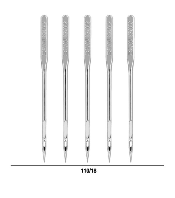 - Set of 5 heavy duty sewing machine needles, size 110/18