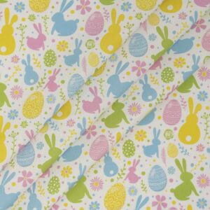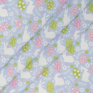 This bundle is perfect for creating quilts, crafts, placemats, napkins, and more. The adorable Easter bunny design on a blue background will add a festive touch to any project. Whether you’re an experienced crafter or just starting out, this fabric bundle is a must-have for your Easter crafting needs.