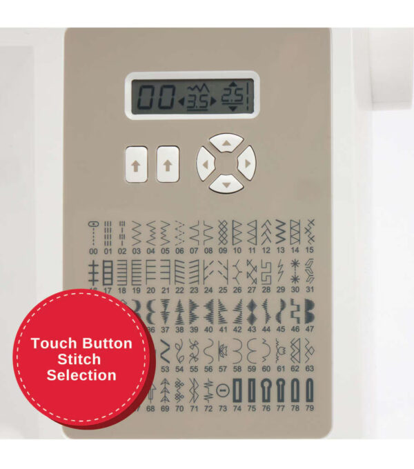 - Touch Button Stitch Selection-Choose your stitch by number by simply touching the selection buttons.