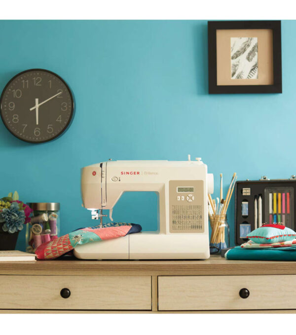 The SINGER 6180 Brilliance is full of features to get your sewing started faster, while adding a professional touch to your projects. With 180 stitch applications, you will have the right stitch for any fabric! Customize stitches to personalize projects using the adjustable stitch length and stitch width, viewable on the LCD screen. Enjoy Touch Button Stitch Selection, and watch the LED lighting. Sew buttonholes in one easy step with consistent results every time. There are 6 different styles of buttonholes to choose from – 2 styles of the basic bartack style for projects like dresses, shirts or home décor, 2 round end as well as 2 keyhole styles for menswear. Take off the Removable Storage Compartment to access the Free Arm, which makes it easy to sew trouser hems and cuffs or around difficult-to-reach areas like children’s clothing. Thanks to a built-in needle threader, you’ll be ready to start sewing in a breeze. Whether you’re just starting out or you’re a more experienced sewist, the SINGER 6180 Brilliance computerized sewing machine will be your go-to sewing tool to create and embellish fashions, home décor and much more!