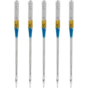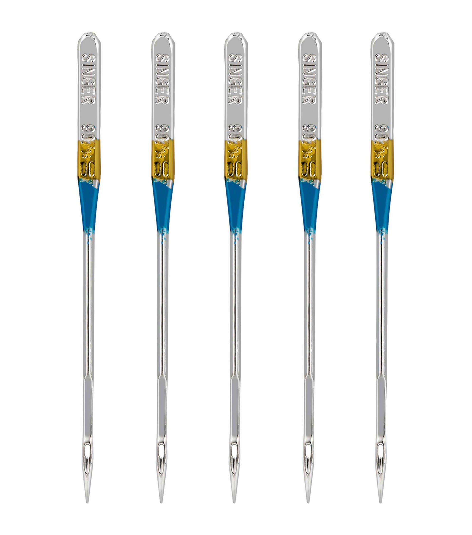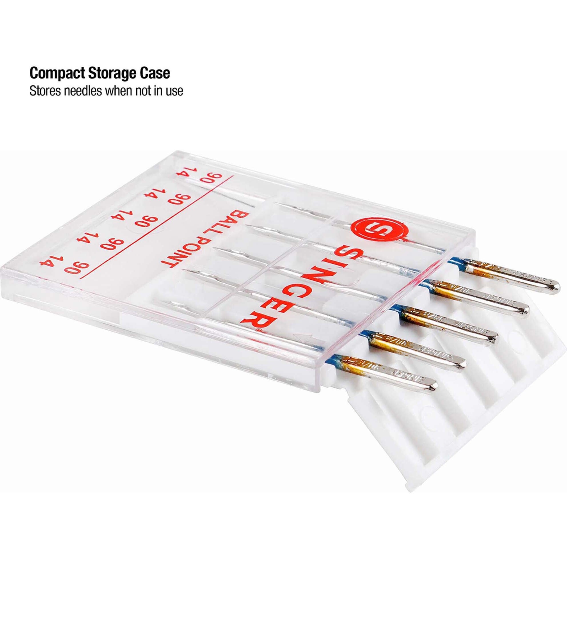 - This pack of 5 SINGER ball point sewing machine needles is the perfect addition to an existing collection of sewing machine needles. The point is designed to slide between fibers of knit fabrics smoothly, without creating holes or runs in knit fabrics. Needles are color coded and sized 90/14, best for use on medium-weight knit fabrics. The SINGER sewing machine needles can be used on SINGER, Brother, Kenmore, Bernina, Janome, Juki and other quality household domestic sewing machines. Domestic machines needles are not compatible with industry sewing machines.
