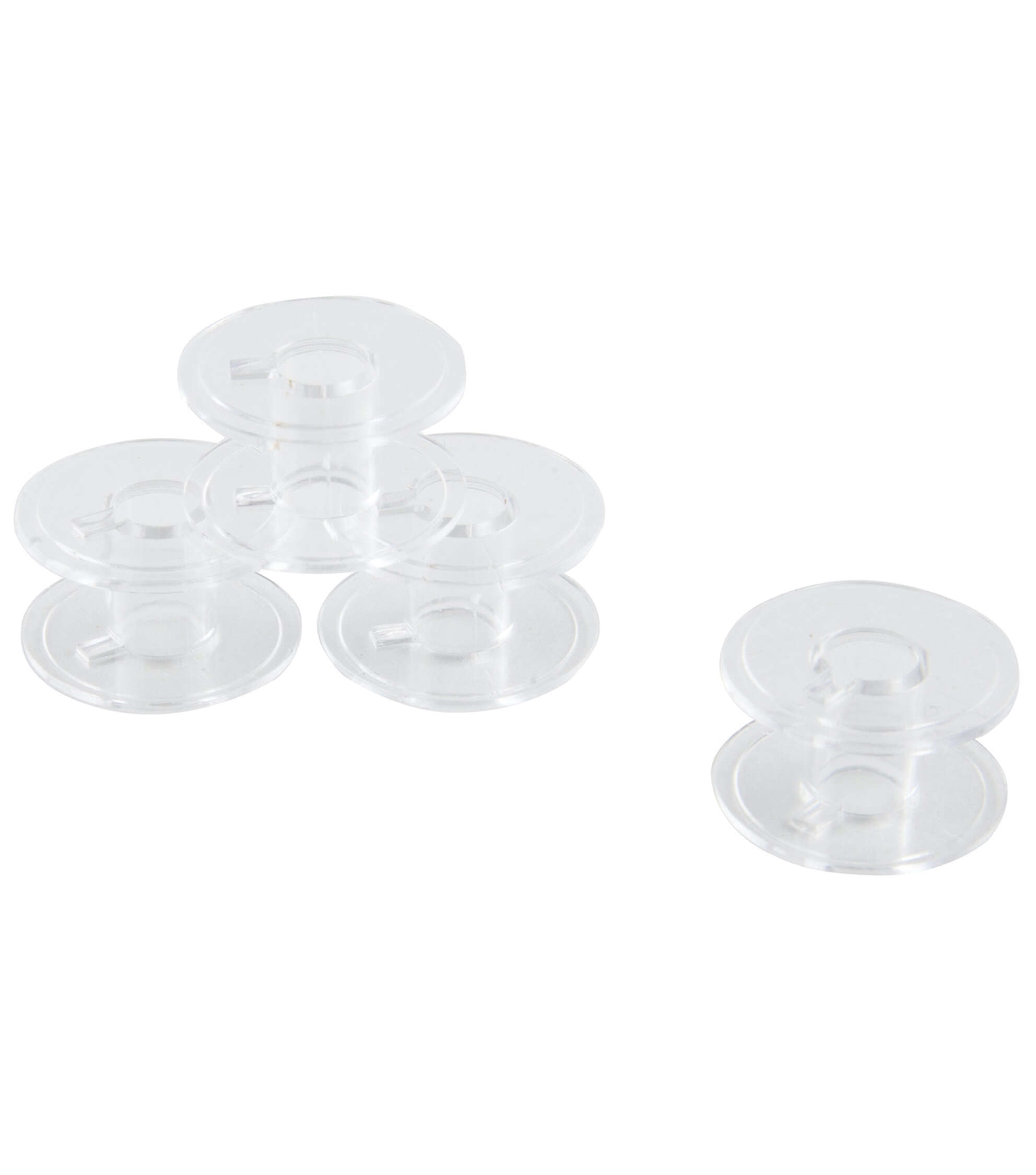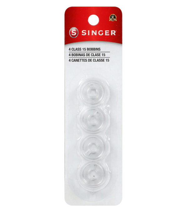 The Singer Plastic Class 15 Bobbins – Transparent will make a great addition to your sewing supplies. These four class 15 transparent plastic bobbins serve as replacements for selected sewing machines from brands such as Singer, Atlas, Brother, Domestic, Elna, Kenmore, Morse, New Home, Sewmore, Universal, White and Wizard. Refer to your machine’s manual to ensure the correct bobbin size. Use the transparent bobbins beneath the needle plate in automatic sewing machines to wind the thread for your embroidery projects. Never add a thread to a partially wound bobbin, as it may be uneven and cause the thread to tangle or break.