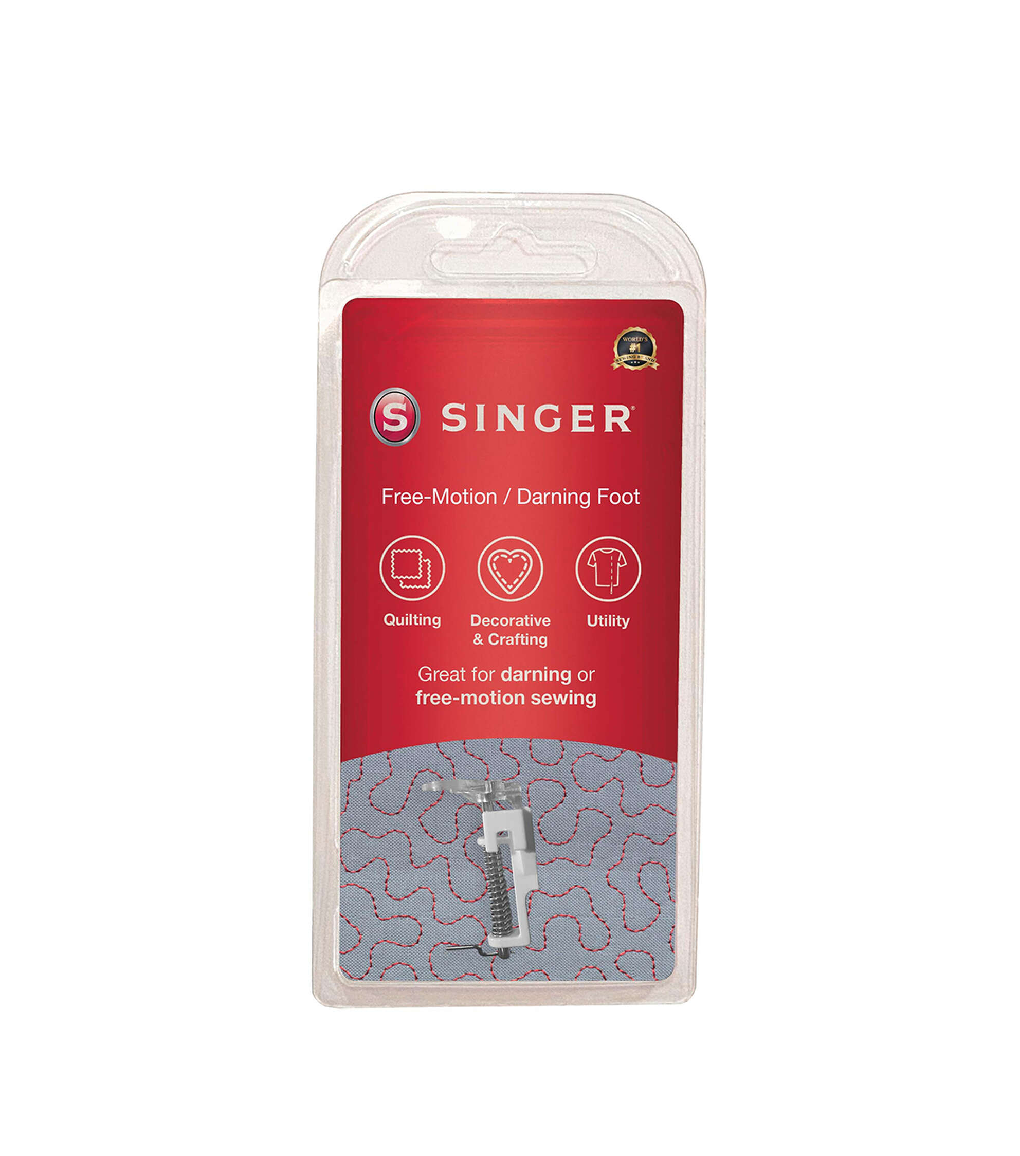 The Free Motion/Darning Foot gives better visibility around the foot when free motion quilting. The closed toe helps prevent threads or fabrics from getting stuck in the foot, especially when stitching on lace-type fabrics.